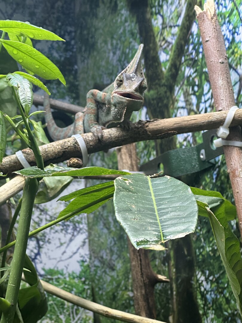 today I woke up and noticed Chameleonaire was gaping. It was really cool night last night got around 62 in my room. Had his fogger gping last night and two other nights in the last week. His ambient temps in there were 72 towards the top and 66 towards the bottom and will heat up some more thru the day. He did this a few times before but I’m pretty sure that was because of his heat lamp after I first got him.