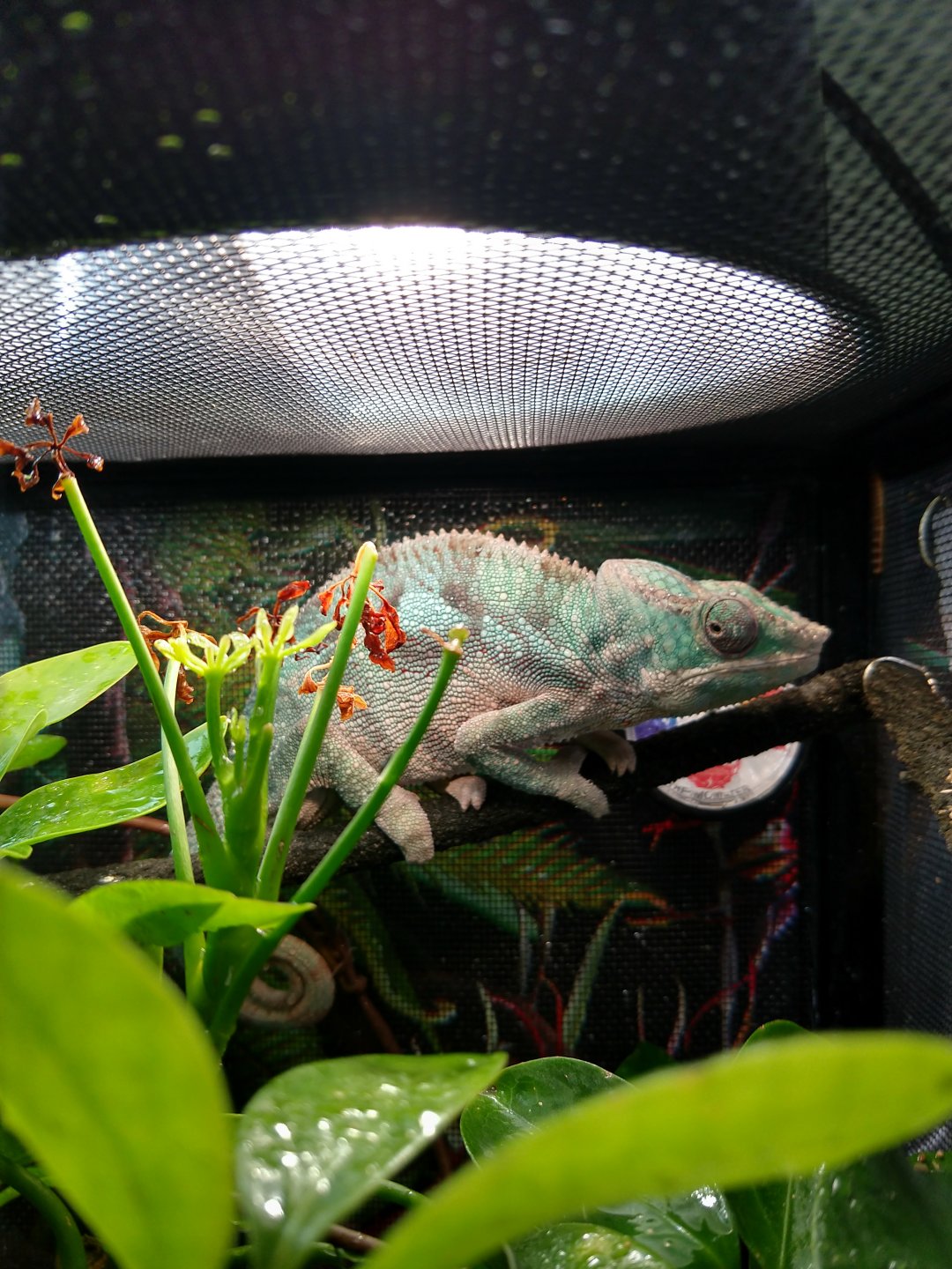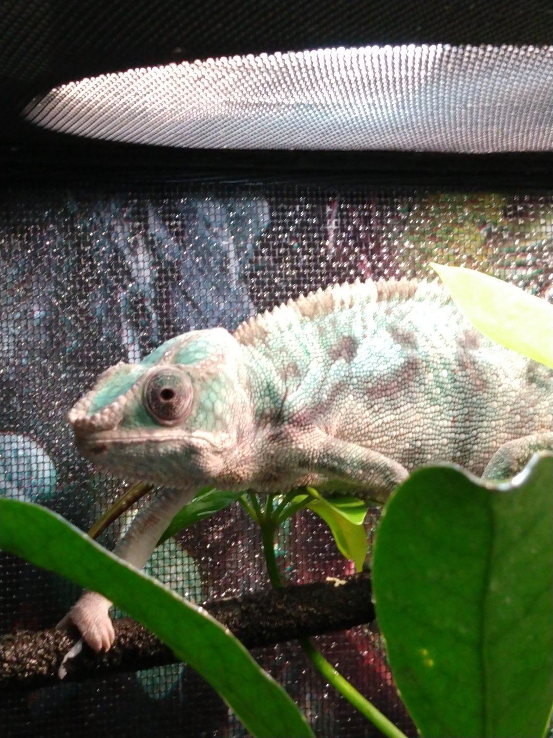 So I'm pretty sure Sir Kronin is just in a perpetually pissed off mood and I'm not quite sure why. For a long time I only got him to eat crickets but he's recently taken a liking to supers, I hand mist him twice a day with it spiking up to 80%, and his basking spot is 85-90°. Even with all that he's almost always dark when I'm around. The only exception is when he gets pale around bedtime. (Which I know is normal). I've included some pics for reference.
