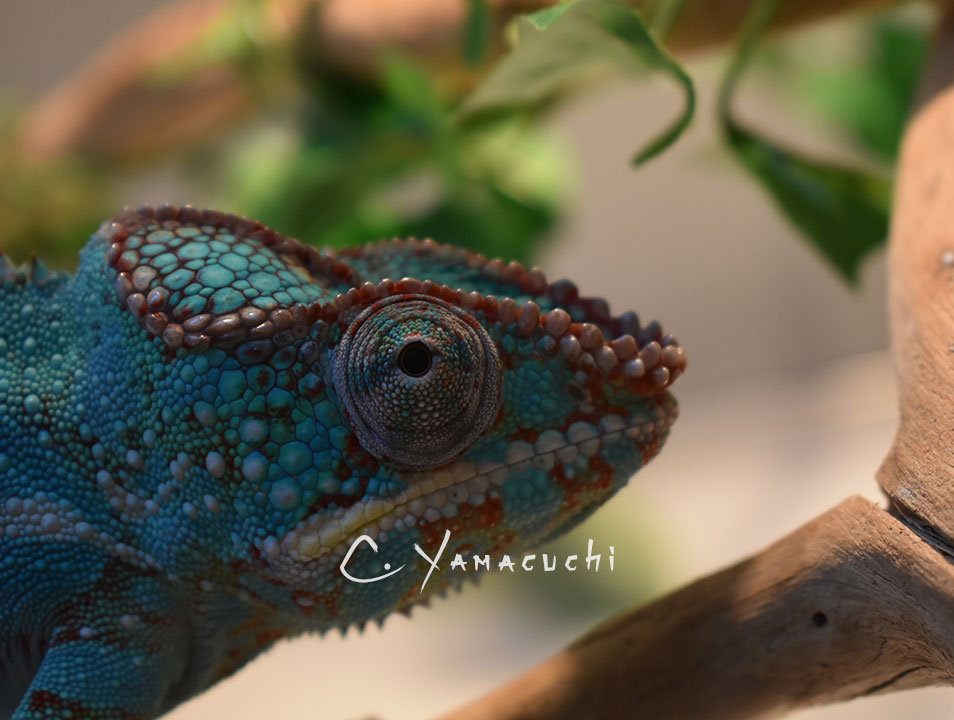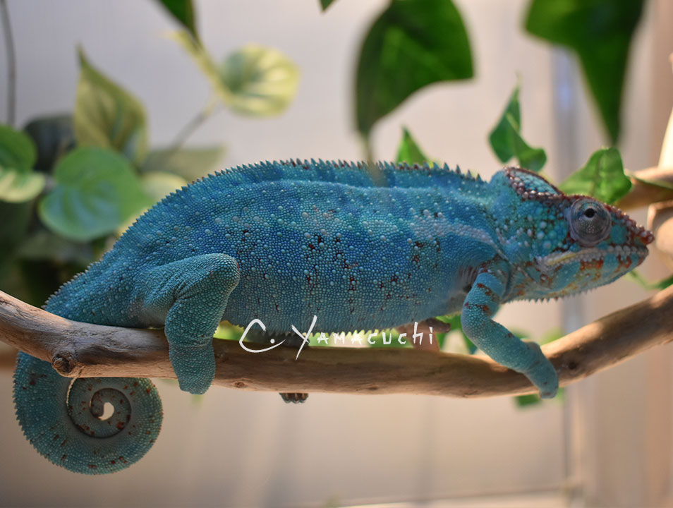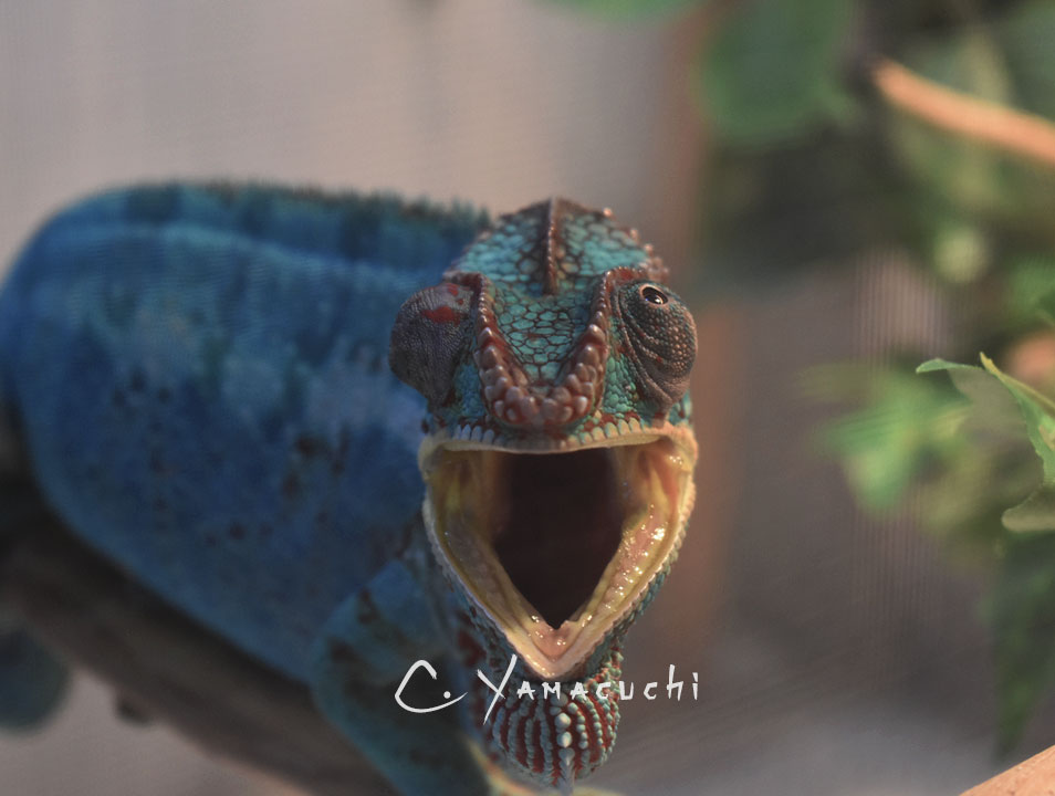 Male Nosy be panther chameleon. Large and ready to breed! Amazing rostral process! Very friendly. (Pic is of him yawning in the morning haha)