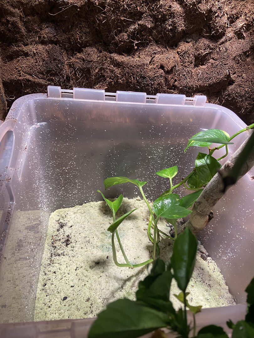 Even though my girls have bioactive enclosures (the whole floor is a lay bin!) the last time one laid she made it clear that there were no appropriate places for her to lay. She added to my collection of grey hair until I finally put her old lay bin in her enclosure out of desperation. So now, both of my veiled girls have standard lay bins incorporated in their substrate. 🤷‍♀️ The bins are tall but I only fill to about 5-6” deep. I think they are 12-13” wide. I have the bins in the back not just for privacy, but so the mister hits it and keeps the sand moist. The bins do have several small drainage holes in their bottoms so they don’t become mud. Thankfully I was correct in determining their poo spots and no poo has gotten in the bins.