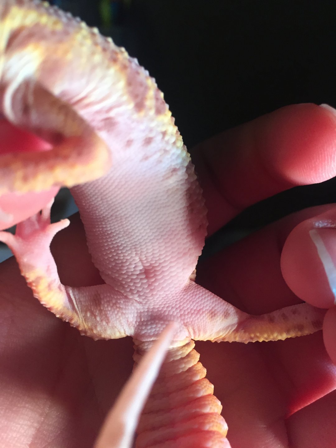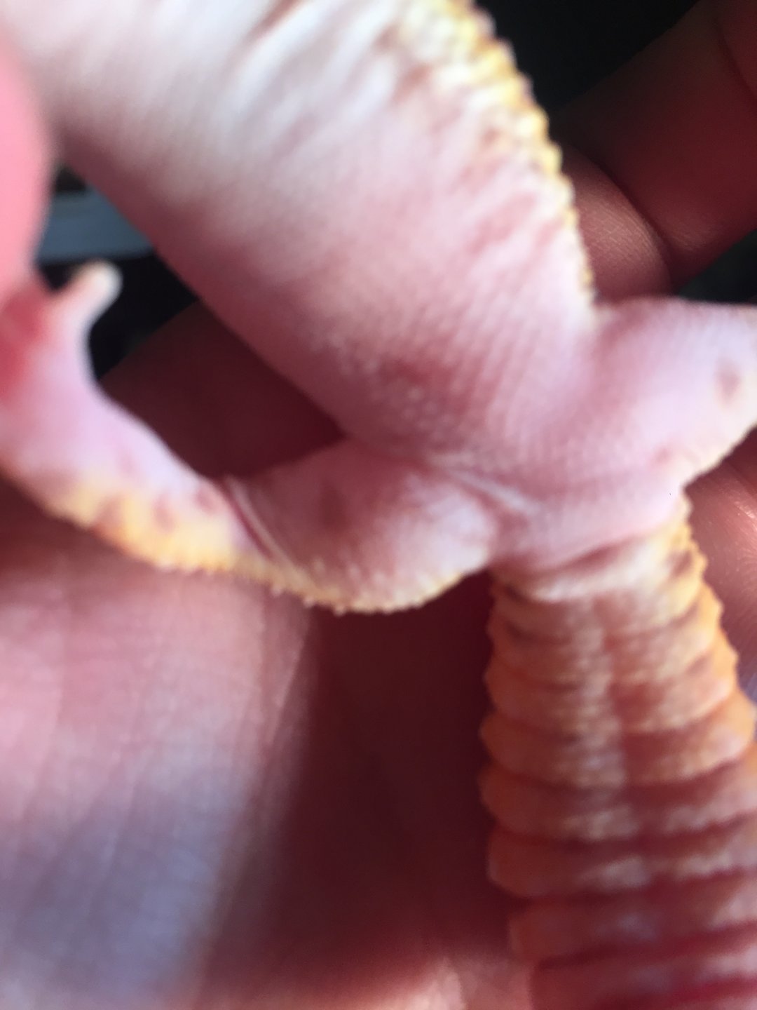 I have a leapord geckos with two messed up back legs from his previous owners I think he may be a male but am not 100% sure he has spot on his legs but they are a brownish color and pretty big he is housed with a female. If he was a boy and mated with the female would the babies have legs like him?