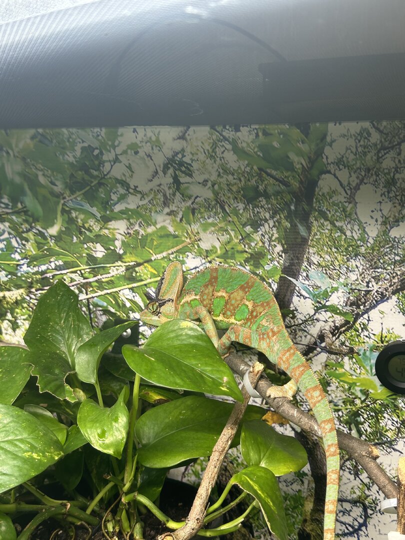 I guess he'll be scared of me for the rest of his life then🥲 he never turned black, just a few dark spots and starts hiding. There was one time where he got really close to me when I put silkworms on his vines... I was hopeful for a few seconds but then the silkworms lil suction cups worked too well and when he tried to eat one, he pulled himself close to me and hissed at me🙃
