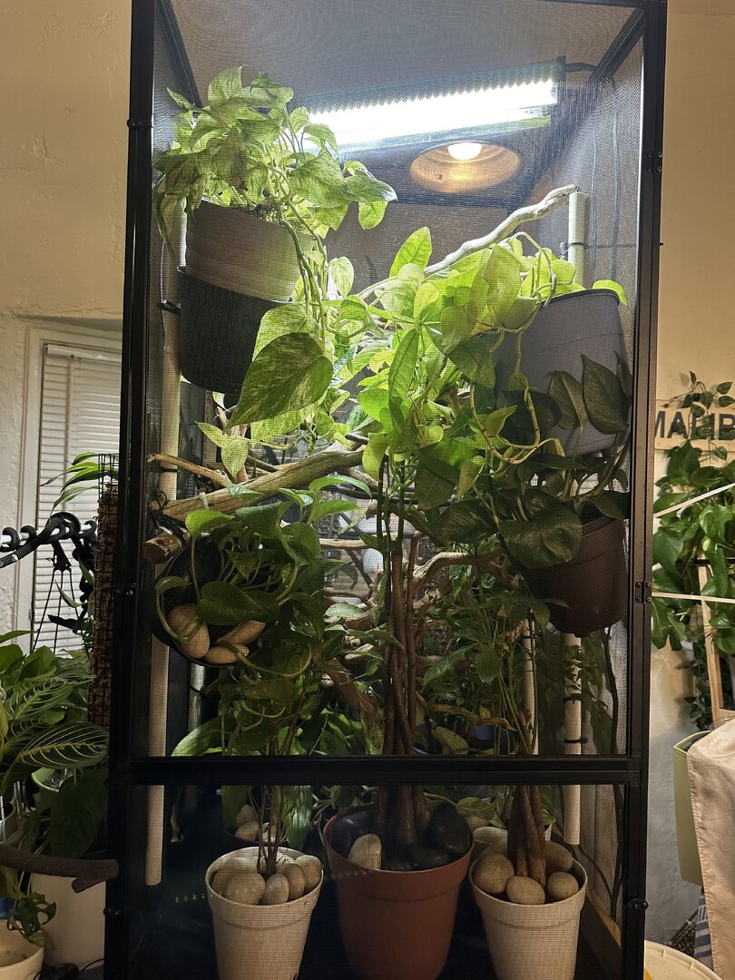 Current Problem - I have been struggling with gular edema the past few months. I stopped his vitamin/D3 (repashy low D3) for a month. I switched his calcium from Pangea to Repashy with no d3, suggested in this group. His edema has not really improved. He has been chewing on branches/ eating dirt (I covered his soil with river rocks and he continues to try). I noticed that the past few weeks he is resting his head much more and dangling his legs. He has had many odd behaviors recently and I am not sure if I am doing something wrong. It is raining in LA and I am not sure if that is impacting him.