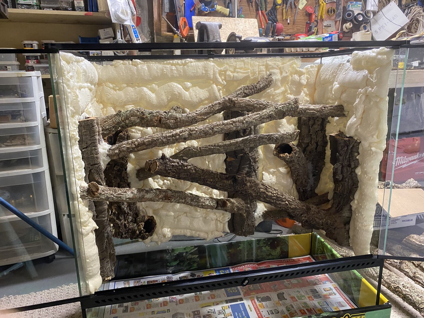 I just started on the tank today. Just have some cork bark pieces siliconed into place so far.
