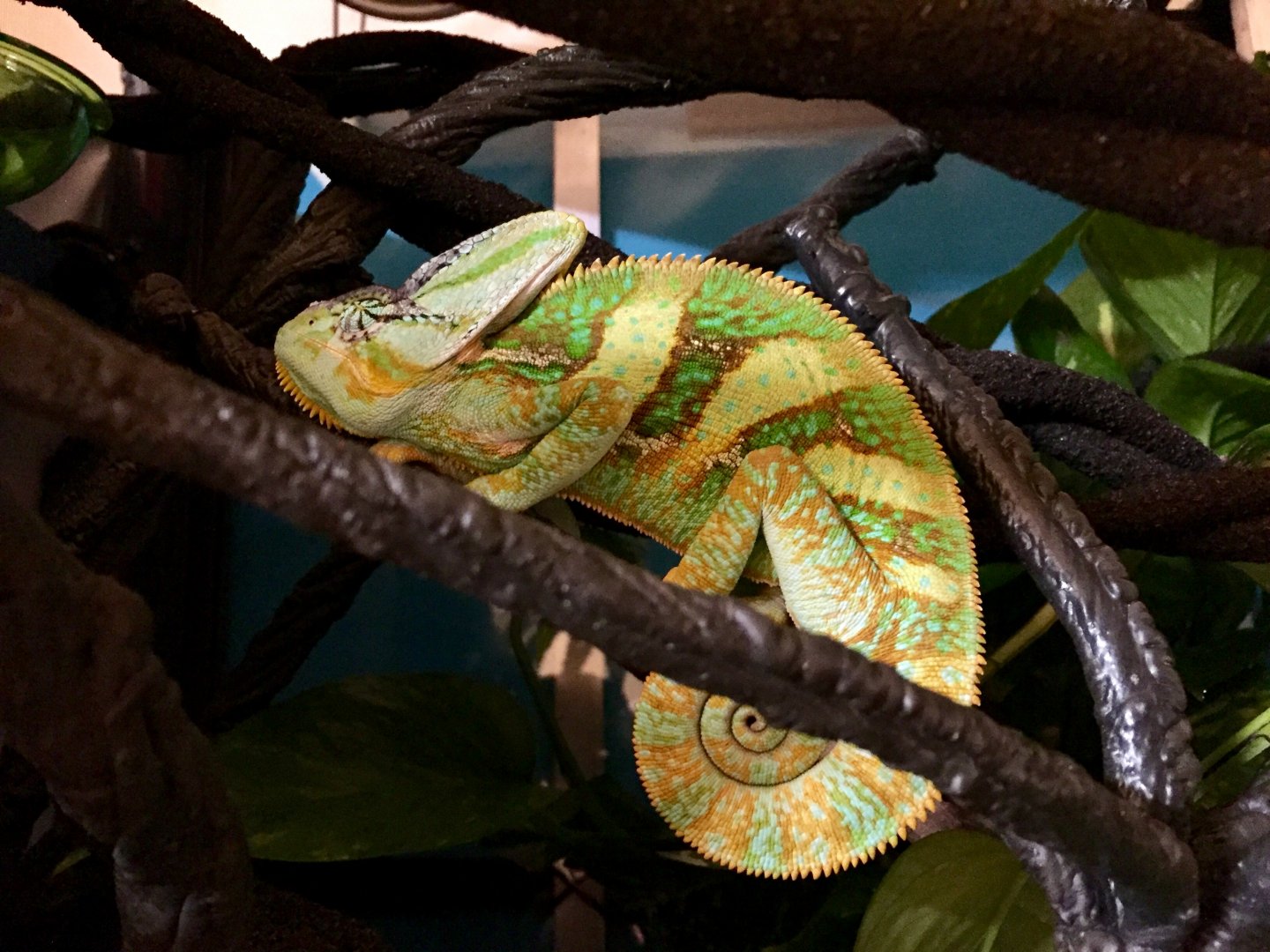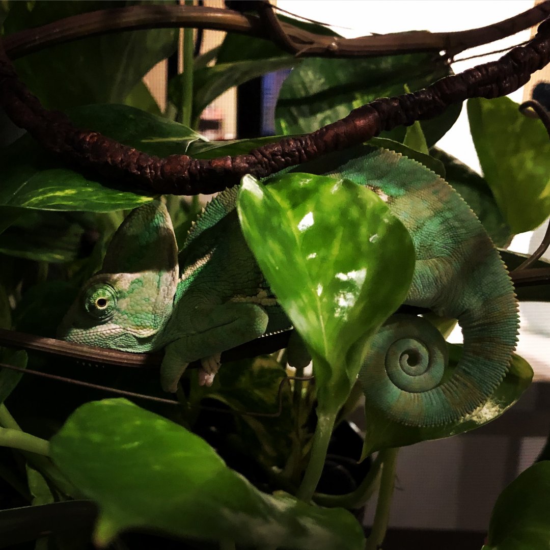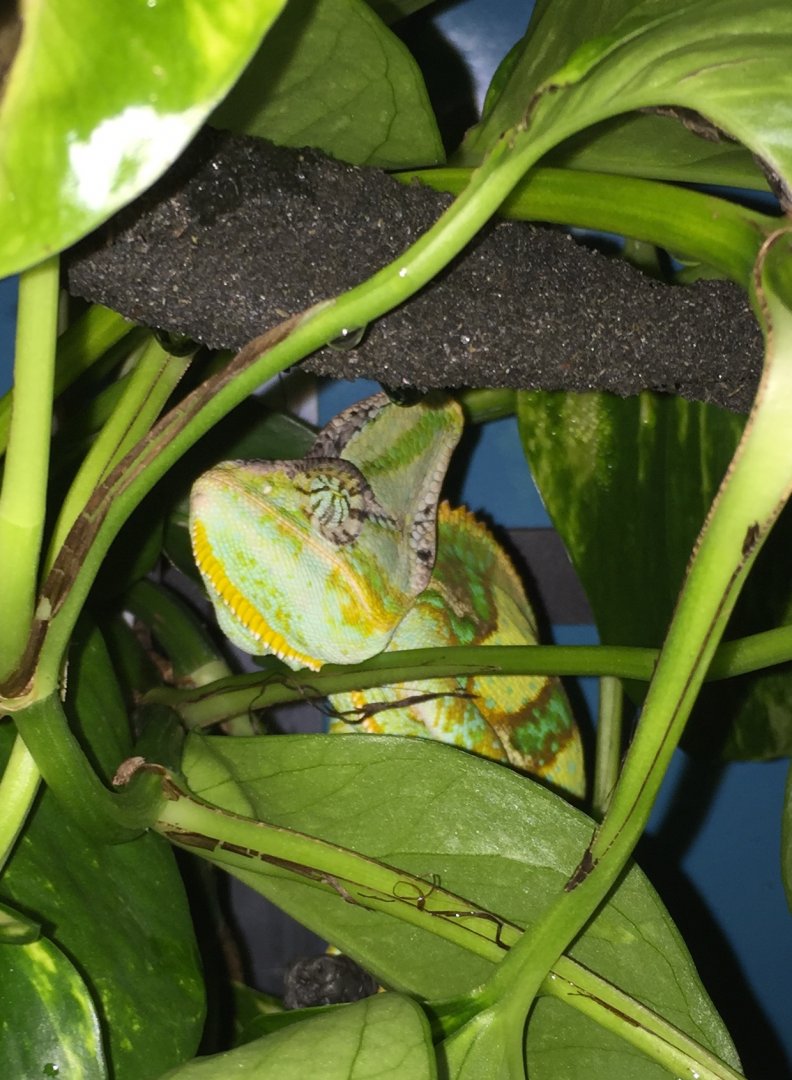 It's the cutest thing when they use "pillows"!Donnie has been curling up in the same spot in his enclosure rhe past few weeks. Up in the corner where his foam vine folds over. He rests his little chin on the bump / pillow every time. So cute and comfy!