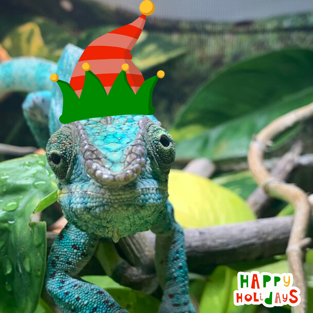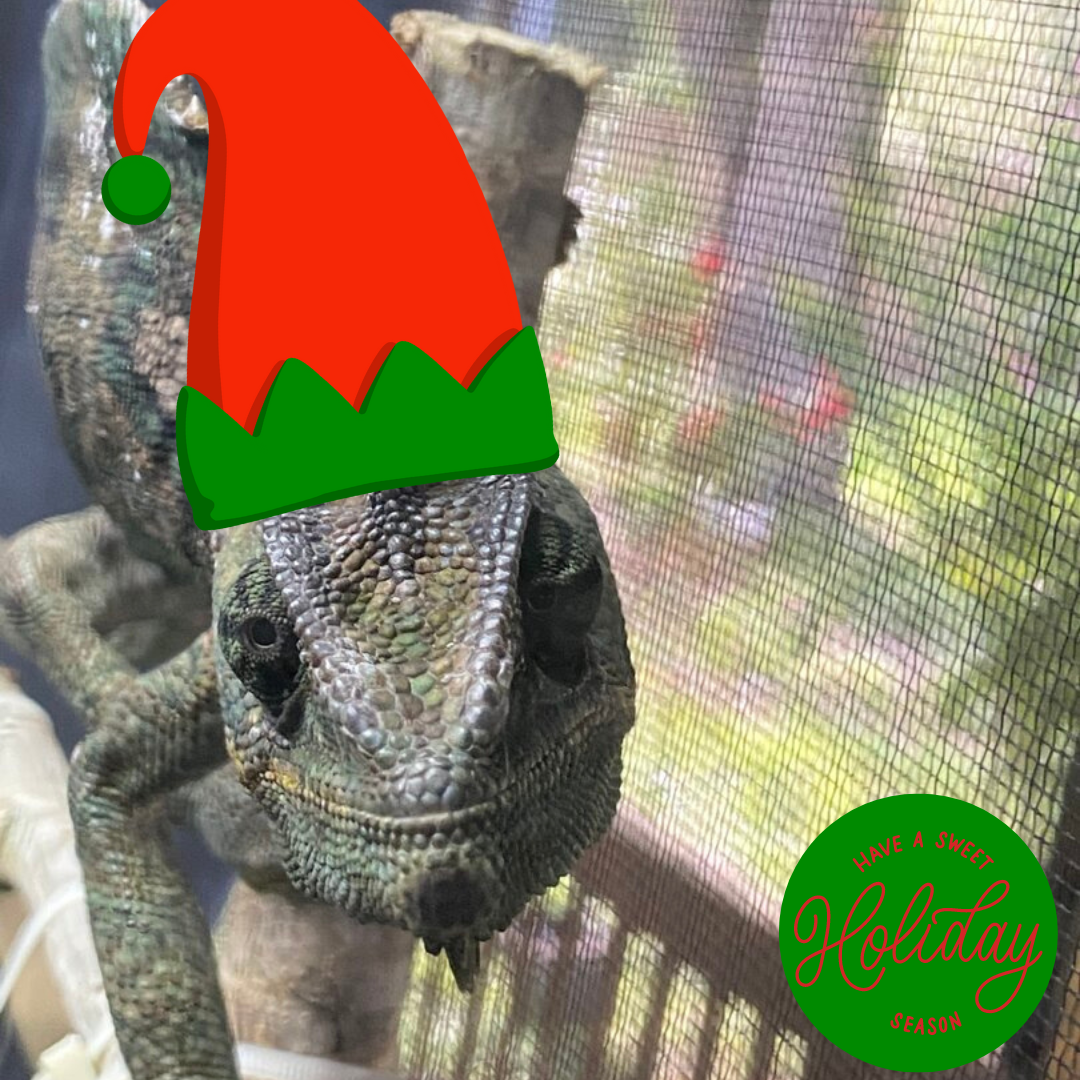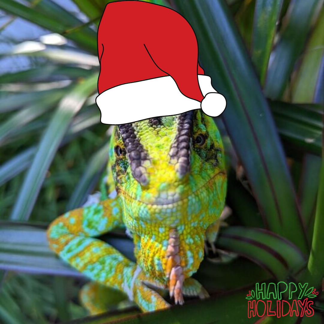 So let me photoshop the Holiday Cheer for you. You can post the image you want done and I will reply post your Holiday Cheer photo of your favorite chameleon buddy. Then just copy the image to your device... Use for a new avatar, social media image, or whatever you like.
