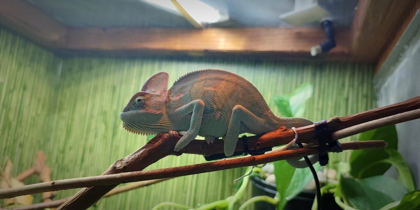 Since i want him to eat something, i pick the roaches one by one and place them around him on branches, as soon as he sees my hand with tweezers in it he goes towards me and when i put the roach on a branch and it runs to hide, he goes for it immediately, hunting it down no matter where it goes.