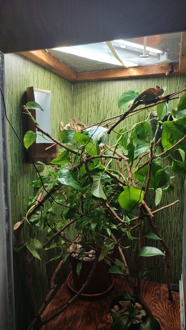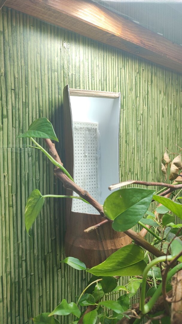 Today I've even dropped one unintentionally and couldn't find him, until he spotted the roach and hunted him even in the bottom part of the cage, so he likes roaches obviously. But still won't use the feeder. Breeder used to free roam his food, but i cannot do that as the cage is a DIY one as well, and there are some smaller gaps and I don't want them to get out of there, so i just put one by one on branches, one after another is eaten.