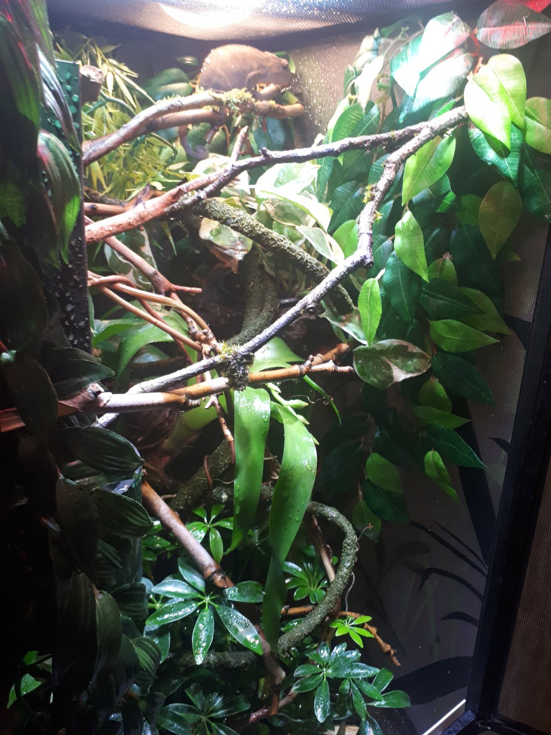 - Watering - What kind of watering technique do you use? How often and how long to you mist? Do you see your chameleon drinking?