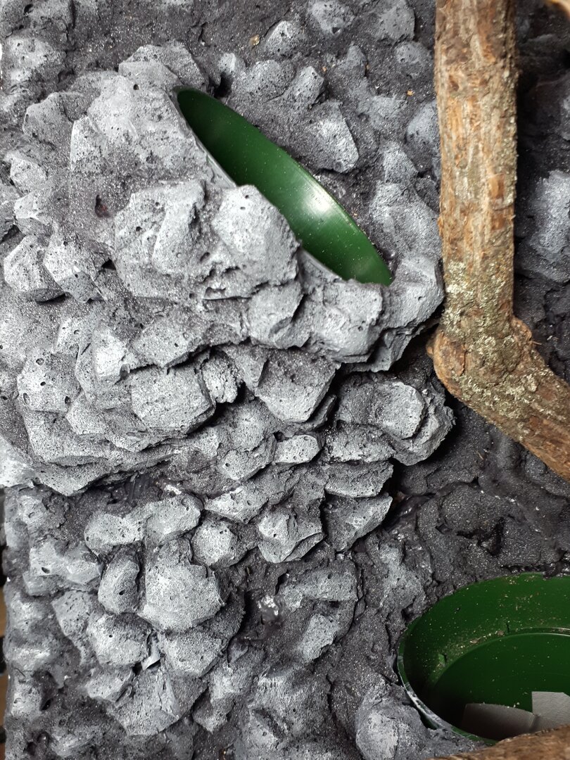 I gave it another mist, and I'll let it dry overnight. I'll start carving it down tomorrow, after I go and pick up some more #12 scalpel blades, and then I'll throw some liquid rubber and some cocofibre on it! Tues/weds I'll add detail pieces, then I'll fix it in the enclosure, get the trellises set up, and get cracking with the sticks! I'm planning on fixing most of the sticks to the trellises, with some contact points on the back.