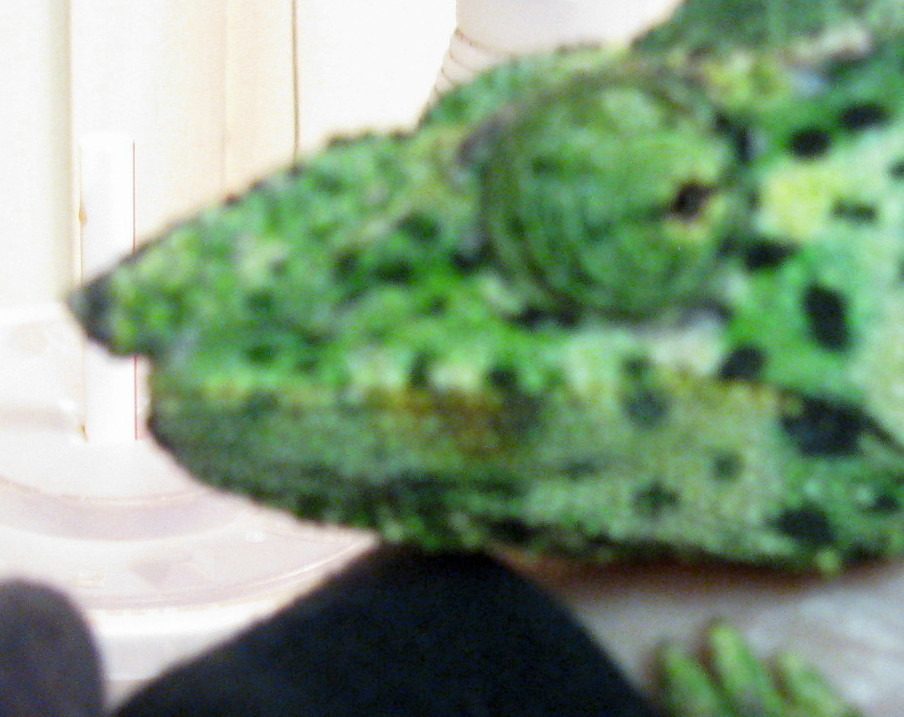 When I was weighing Bert yesterday, I noticed this blemish on her lip. It looks like a stain so not sure if its bug juice or not. Any thoughts on this? Sorry for the crappy photo. There is another photo of her on this thread.