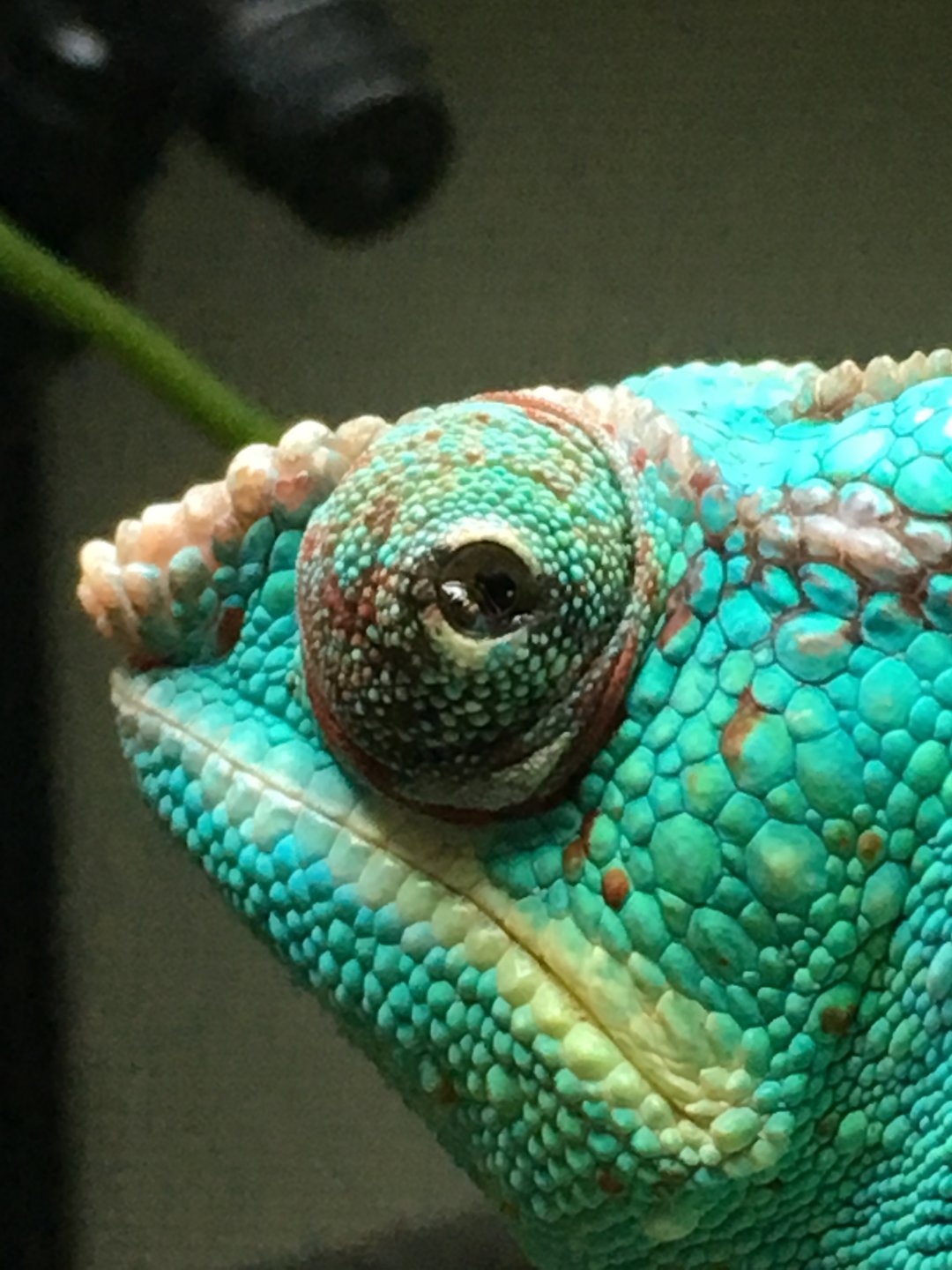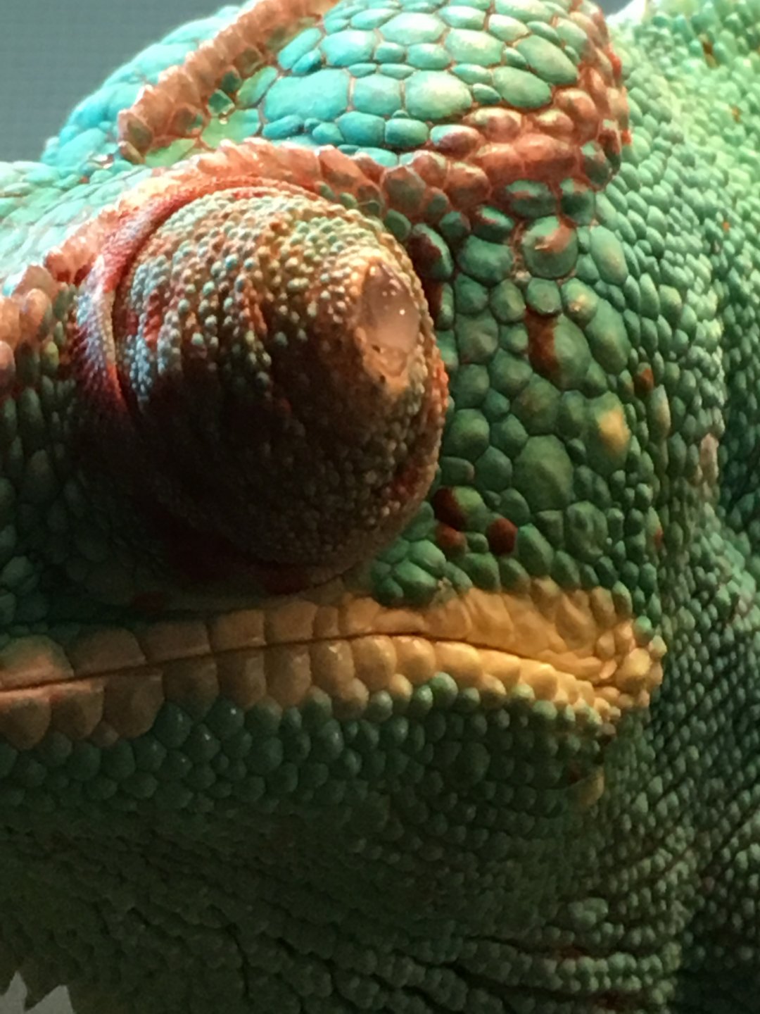 I have a year and a half old panther chameleon and yesterday morning when I woke up I found him with his eye incased in some sort of liquid or puss(pic 1/2). This had me freaking out inside I finally felt what my mother felt over all these years. I didn't know what to do. I had read about people warming up their showers and facing their shower heads toward the wall so they can have their chameleon chill in the warm spray of the water to help with shedding. I didn't want to touch his eye with anything not knowing what it was or how to handle it so I tried to lightly rinse it with the spray of the warm water. My chameleon doesn't really hiss or fuss if I ever handle him so he was fine with me trying to hold him in the shower. When he felt the spray he seemed quit calm and his eye cleared up for the day and at night it seemed fine. This morning it again he had liquid come of is eye over night and it dried. I rinsed it out again but it seems to be coming out quicker now(pic 3). I called a local vet my friend took his chameleon to and the earliest appointment is Monday at 8am.