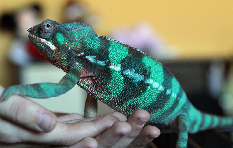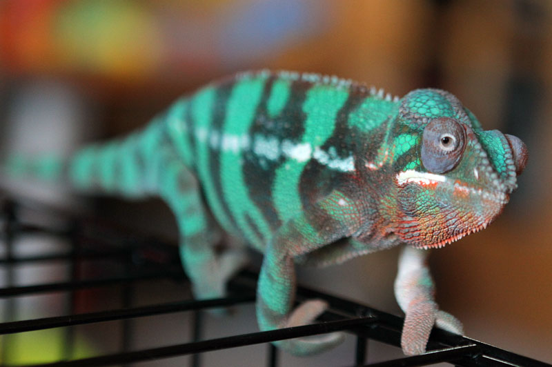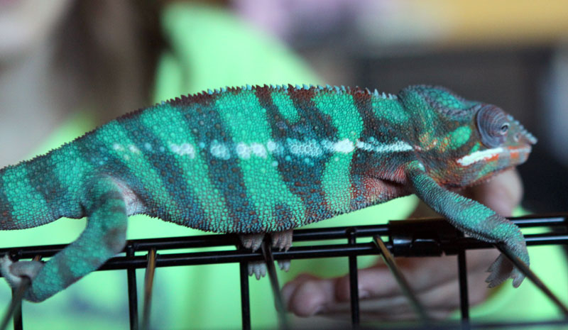 I bought him from a young guy that said he got him from Screameleons, and the binder he gave me had a care sheet for Ambanja. It looked like one he printed from the internet though, so I don't think that came with the shipment. Where it got weird was when I asked Screameleons who his sire was and gave the kids name, and they said they had no record of that customer. I then texted him and asked him if it would be under another name and he has never answered me, and I've followed up a few times. Hence the curiosity and not being able to know for sure, but you guys have provided great arguments so I guess we will always speculate. I am amazed by his greens and his bars go to almost black when he's basking. He is also incredibly docile, I've never seen him gape or hiss, he always climbs onto me whenever I handle him, but he's very busy when I have him. He never stops moving, which might be normal, I've not had another one to compare. I put him in front of the bathroom mirror and he seemed to not even pay attention to his reflection, he just wanted to move up my arm. His colors just seem to get more intense when he's out, but he doesn't shift to orange and yellow or anything (except that orange on his throat).