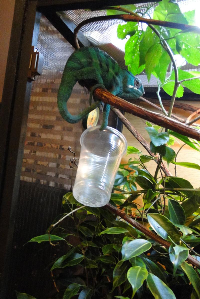 Question about the cup. Have you ever seen him shoot at feeders from outside the cup and hit his tongue on the outside? I read I think in the screameleons web site not to use a clear cup because it could injur their tongue. It might work for you which is awesome. Just thought you might have noticed it once or twice.