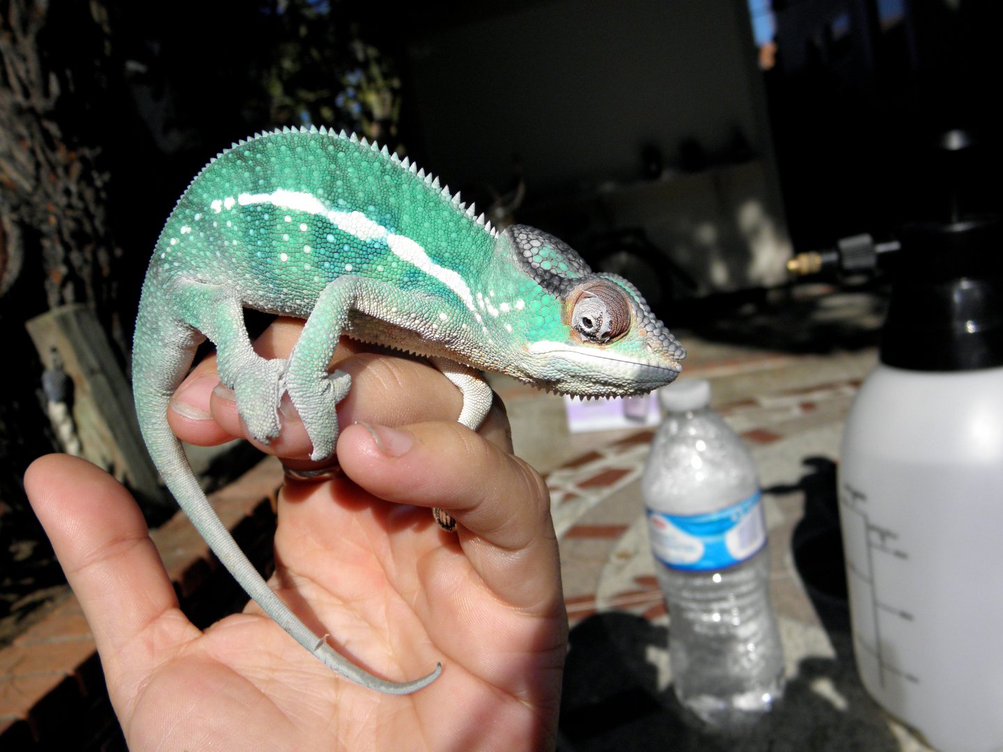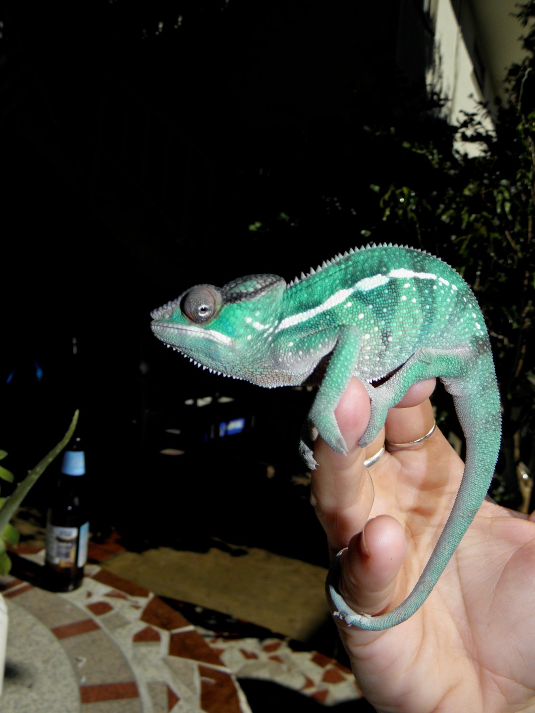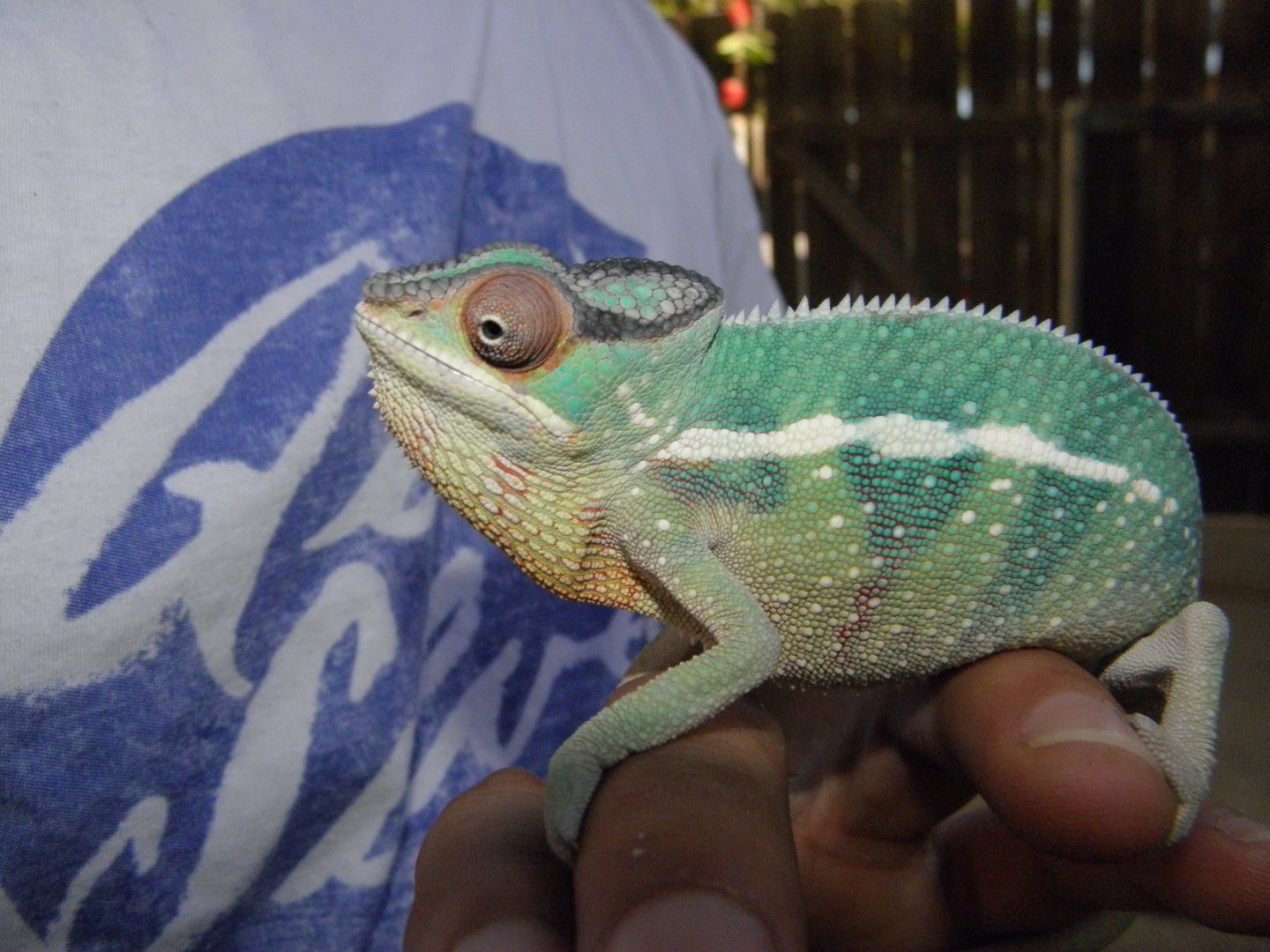 I have a fast growing baby Nosy Mitsio Panther Chameleon. We got him at 3 months old very tiny, and he has tripled in size the past month. He is currently 4 months old, weighing in at a whopping 30grams. At this point in time he is eating everything and anything that has movement, he loves to hunt within his cage. I previously had a very picky Deremensis Cham who only liked select feeders, but this little dude is interested in everything. I am looking to expand his diet, so far he is eating crickets, meal worms, hornworms, dubia, and wax worms. I know this cham is going to get way larger than my last so I am interested in what other large feeders everyone is using (once he gets older). Ill post a few photos of him, anything you think he can handle I am willing to try.