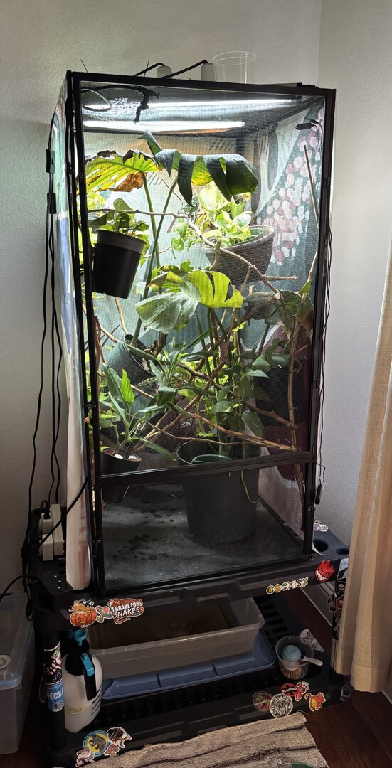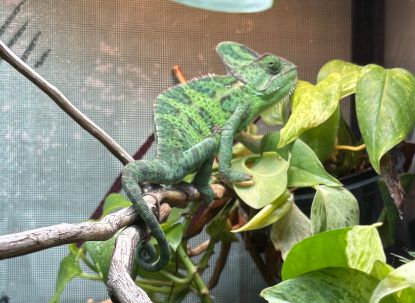 I've had Prismo for about two years now. Unfortunately, I’m moving away for college, and my new apartment won’t allow me to bring her. I also know I won’t be able to provide her with the time she deserves, so I’ve made the difficult decision to rehome her. Prismo is a curious little chameleon, she eats just about anything that moves and is generally friendly (as long as there are no sudden movements).