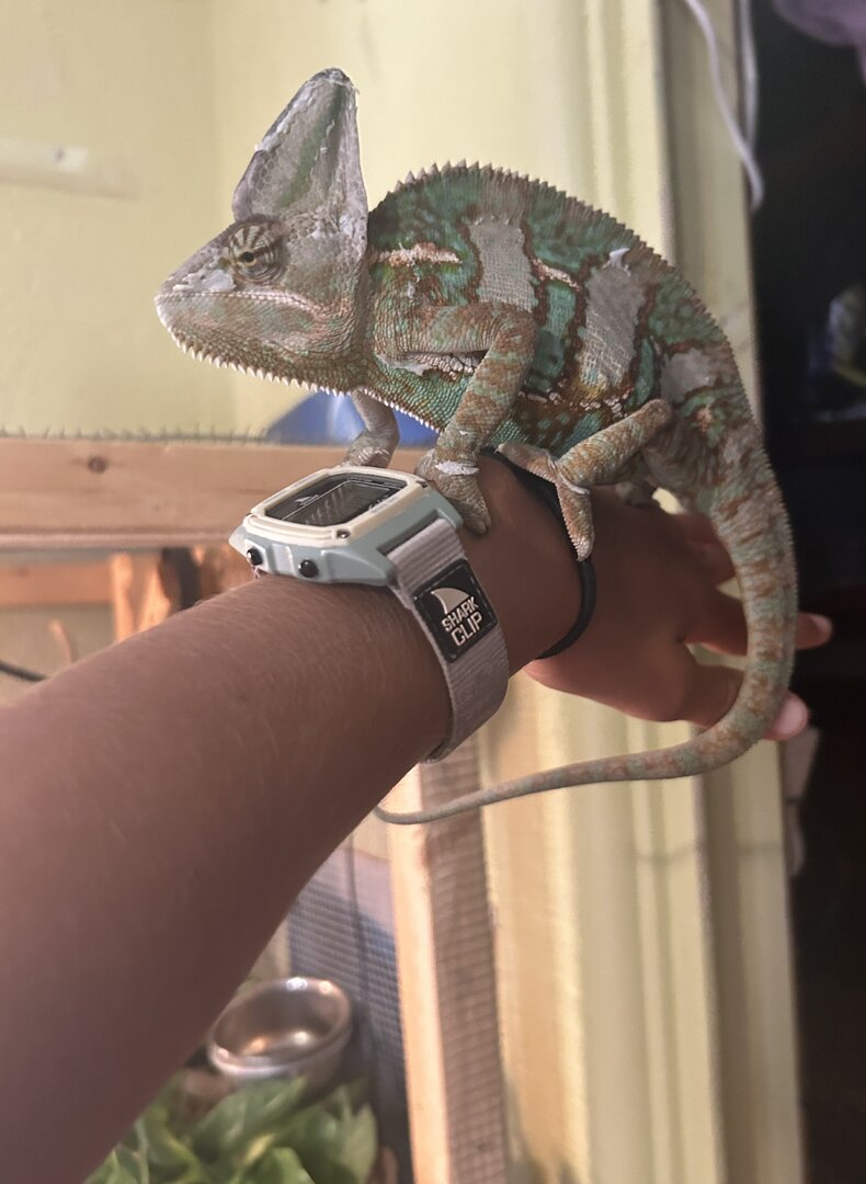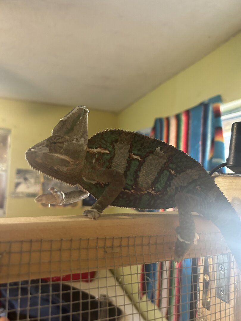 Hello everyone!! I am unfortunately looking to rehome my one year old male veiled chameleon. He is healthy and has a funny personality. I am moving into a small apartment and the conditions would just not be right for him. If anyone is interested in taking him, he comes with a 5”5 ft tall cage and both types of lights that he needs. I have a water dropper as well. There is no rehoming fee and we are located in Daytona Beach, Fl.