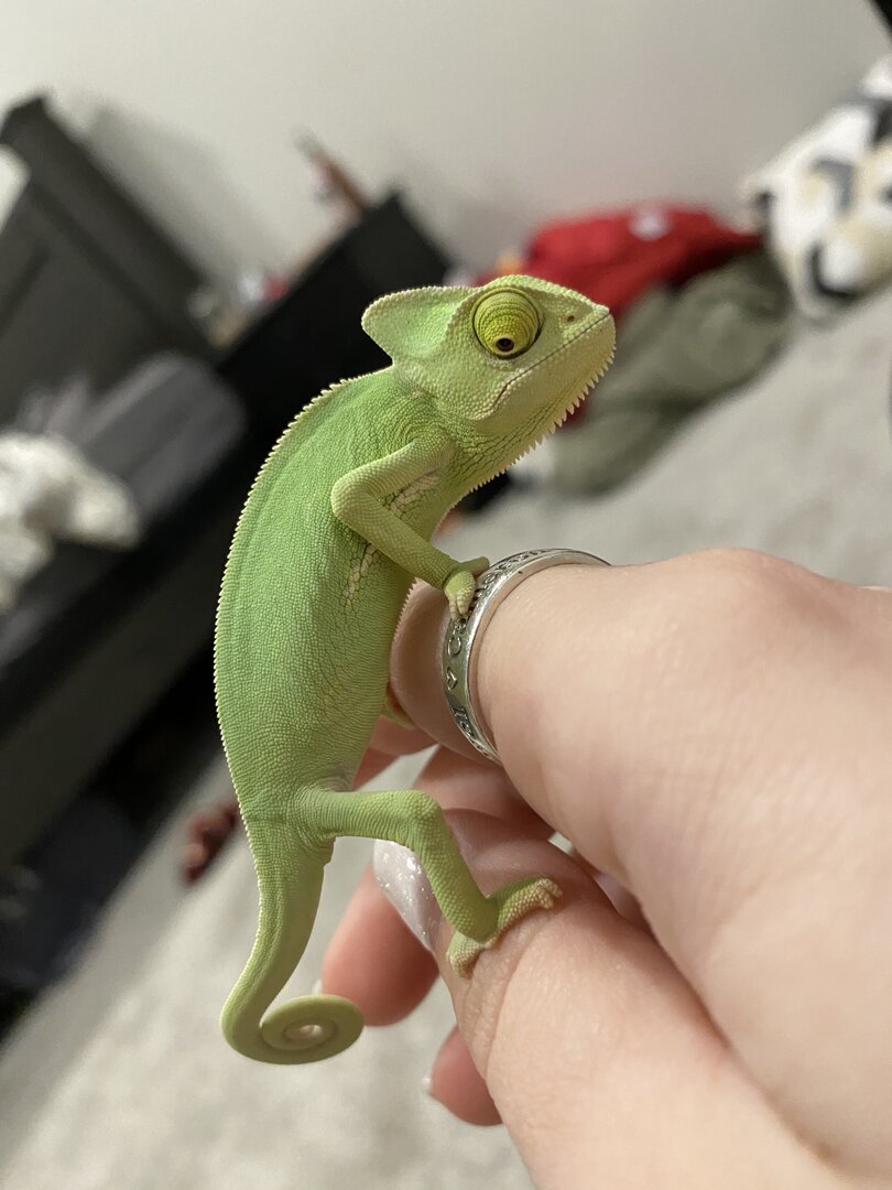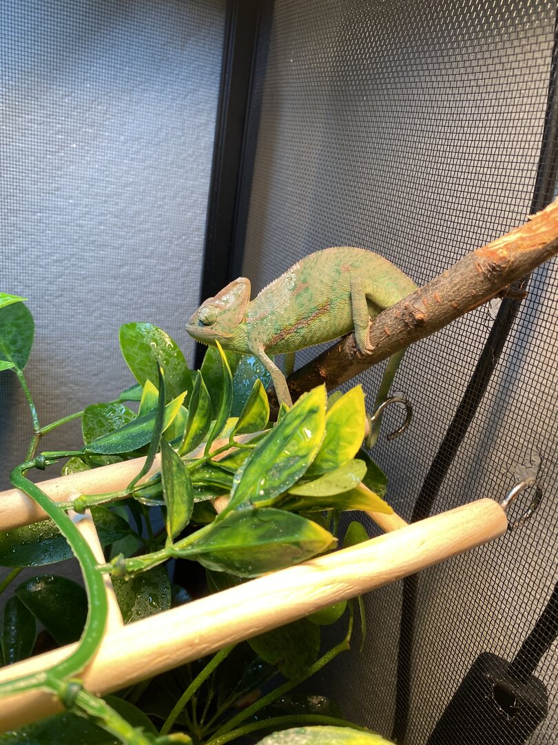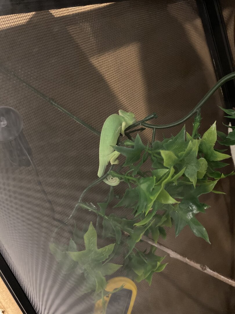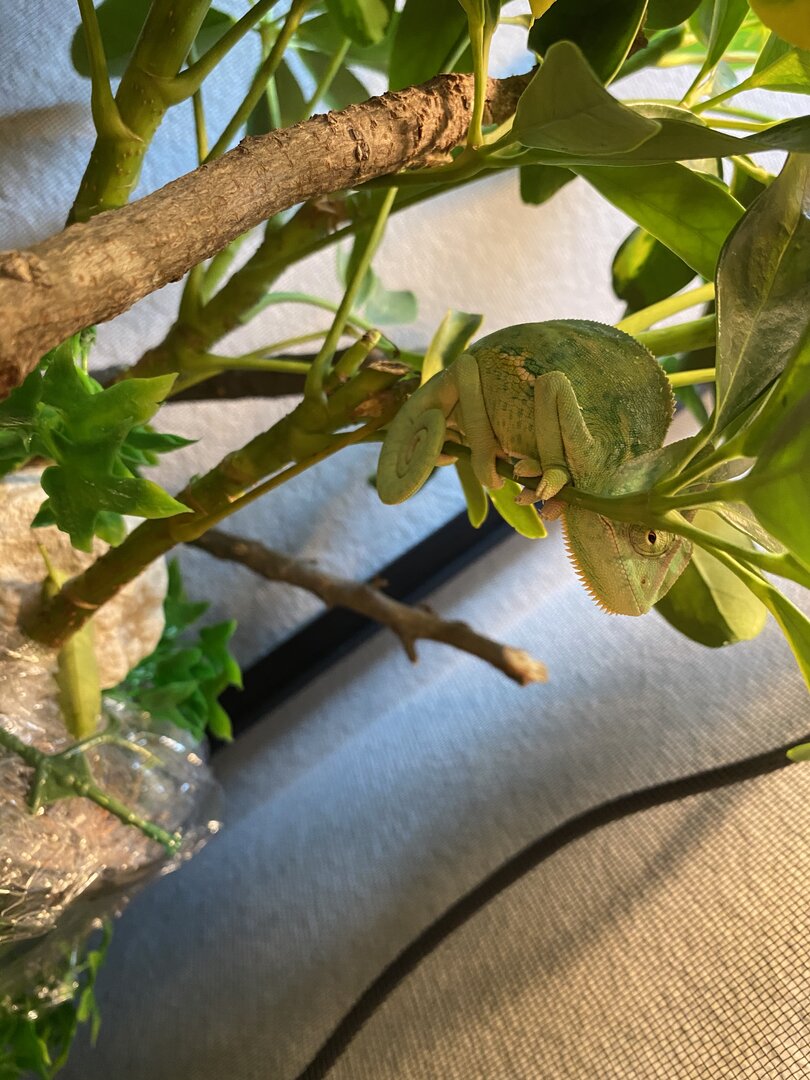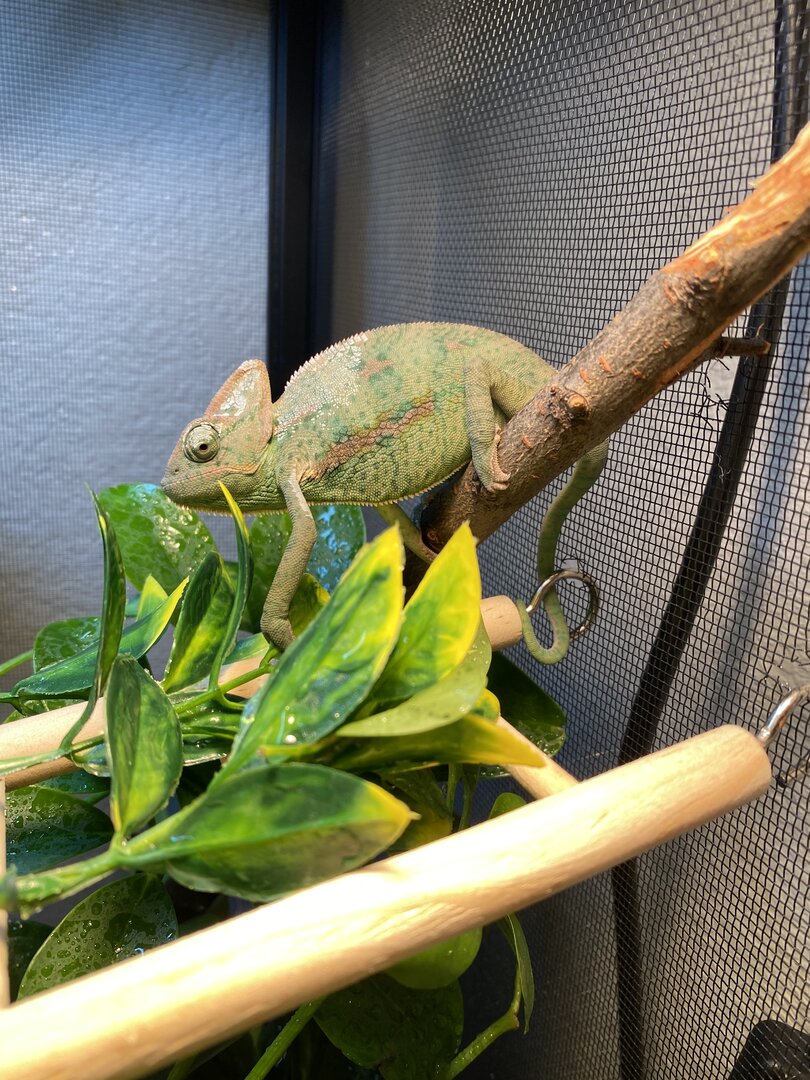 I have a 2 month Male Veiled Chameleon. He’s very active, since day one in his new cage he was very curious about what all was in his cage, where he could go, etc.