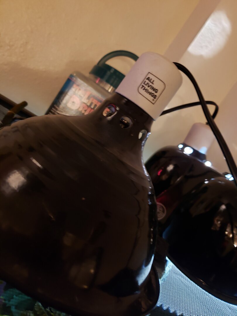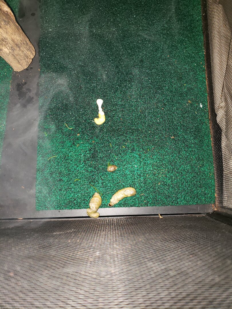 Here are pictures of my setup and light and heat source as well as the powder i use and some of his droppings from yesterday. ObviouslyI would love more hel on making his cage more friendly with love plants. Ive changed the subtrate from the wood subtrate to the carpet subtreate. I also have a shed soak that ive done with him 1x but need to do again cuz he is shedding some.