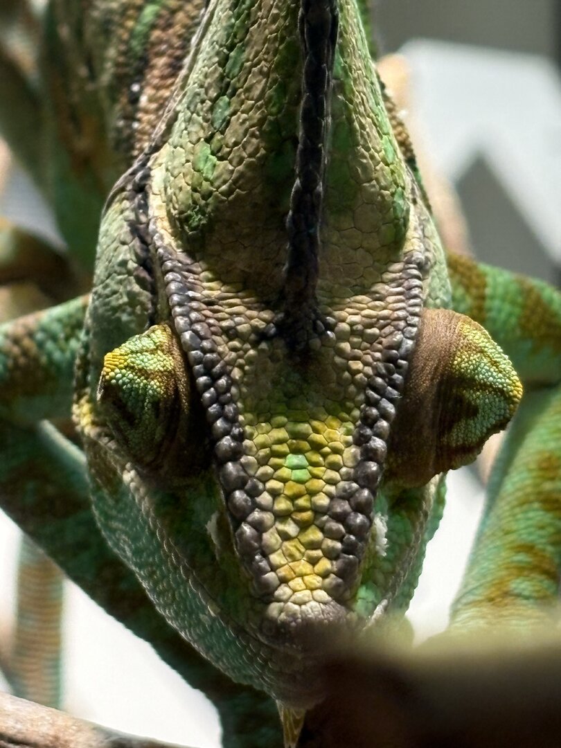 I looked back at older pics and confirmed my memory of him having always had his left eye smaller and flatter than his right. For a little while recently, I every now and then catch him squinting with his left eye. It started being just a second or two, and he’s seemed to have no other issue, so I’ve been monitoring. Yesterday morning, before the vet visit, he was rubbing his eye against a branch, which is the first time I’ve ever seen him do that. About a week or so ago, that whole eye was bulging out, which has been coming and going. The soonest I could get him to the vet was yesterday. Unfortunately, my go-to and trusted Dr Bogoslavsky has just retired, so we had to go to the other Orlando exotics vet. Aside from his eye looking wonky, he is a strong and healthy older looking guy. Kidney values were perfect and the rest of the labs were sent out, so no results for a few days. X ray showed something not bony behind the eye. It could be inflammation, an abscesss, tumor, super deep debris maybe? Nothing came out from his eye flush. So, he’s starting Meloxicam for possible pain and inflammation and antibiotic (ceftazidine) for possible infection/abscess, but of course, an abscess would need to be cleaned out, which won’t be very easy. The only other finding is that his vision in that eye is extremely poor. Follow up is in 3-4 weeks and we’ll go from there.