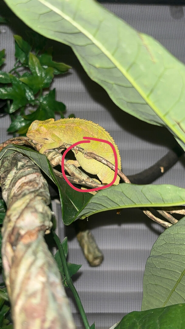 Hello, I checked up on my female chameleon while she was sleeping and I noticed this lump on her and i’m not sure what that is? Could someone explain, i’m very concerned.