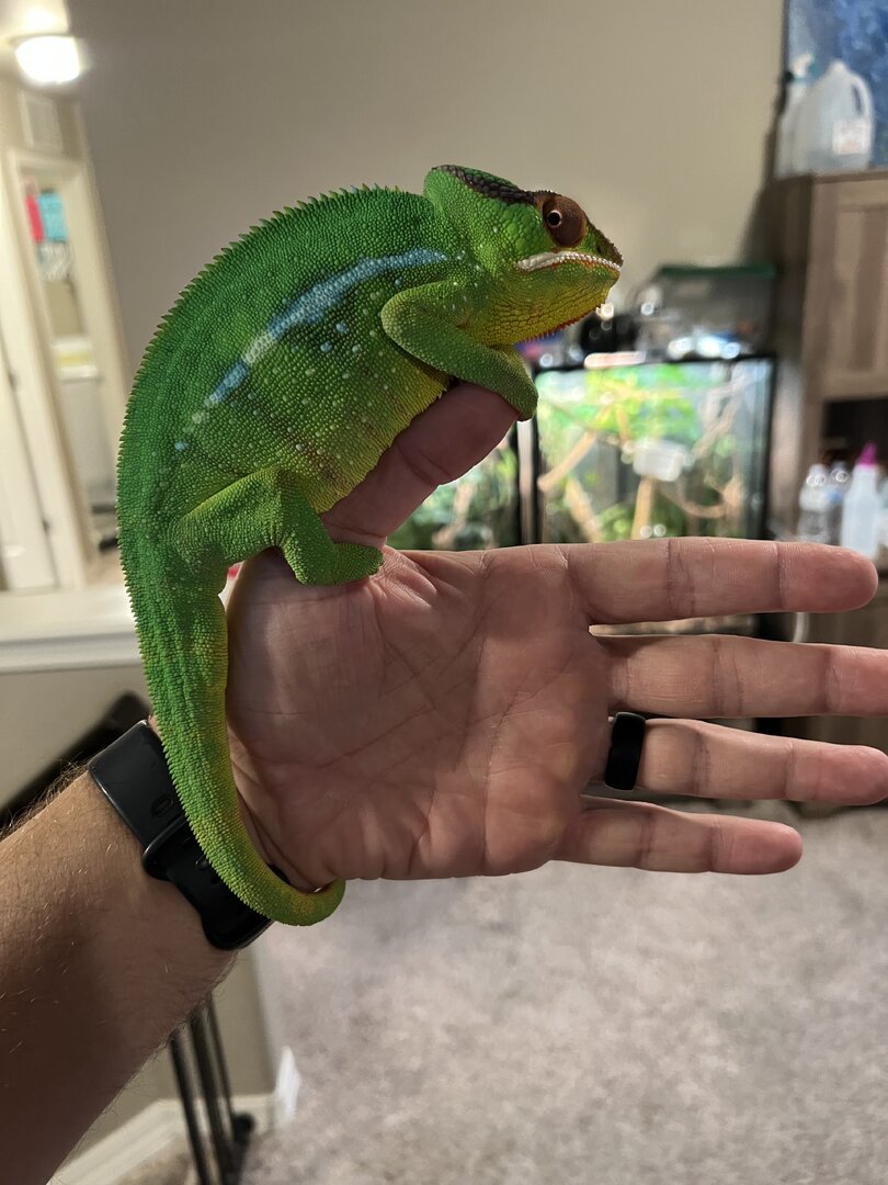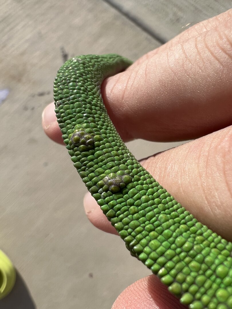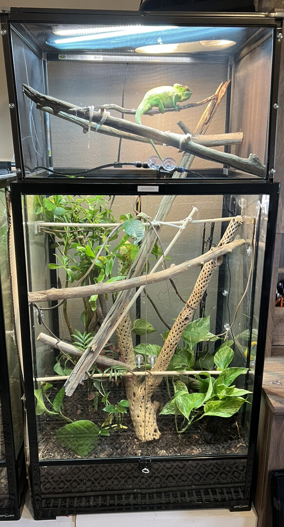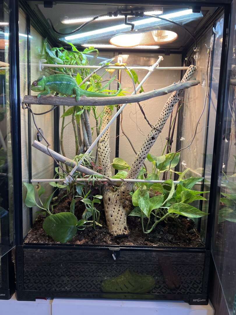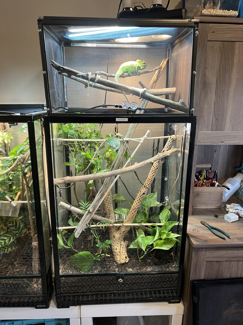 Hey everyone, I have a 21 month old male nosy Mitsio panther chameleon. He started getting these small bumps on his tail. They don’t seem to bother him but I’m curious if anyone has seen anything like these. He is in a 24x18x36 enclosure, t5 UVB tube bulb, full spectrum UV lights fit the plants, a heat bulb and gets misted every two hours during the day for 12 seconds. I feed him crickets, dubias, silkworms occasionally, hornworms occasionally and calcium worms. I know his cage is a little small, I’m working on an expansion screen enclosure for the top to make it about18” taller. Also, it is glass, we live in Colorado where it is super dry so I need to keep his humidity up. Pictures are attached of him and his enclosure.