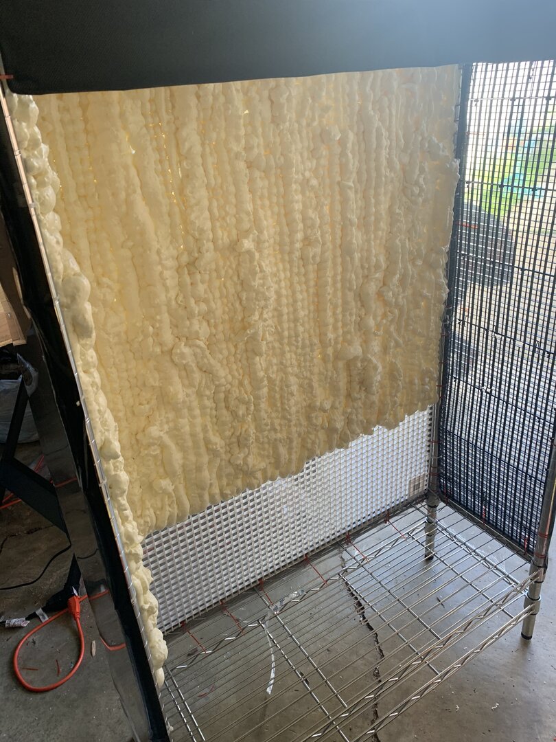 I’m foaming up to this point because that’s where the bin will sit. Once the foam is dry I’ll put the bin back on to show how it’s going to sit. I got 6 cans of foam so far I think I used 2 and half? So 6 is the number that’s working so far