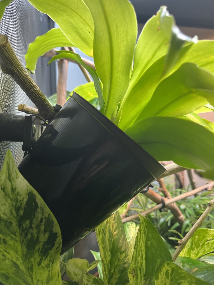 • Watering - I have the Monsoon Multi 2. It mists every 8 hours - 7am, 3pm and 11pm for 1 min. Haven’t seen him drink lately since I’m not home much.