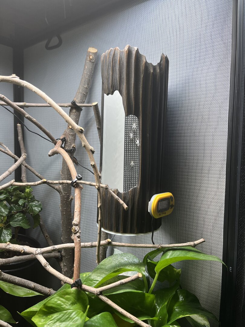 • Humidity - Day 40-50%, Night - 50-60%. Night hydration is low, ideally you'll want it to be 80-100%, if you live in a dry area I would consider getting a fog machine and fogging at night when you can get temps down to 22 at night. This is also an excellent way to hydrate your baby.
