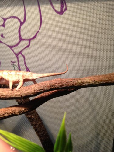 Oglax21 New Member May 14, 2013 #1 Just got it and i dont know if its male or female. its about 2-3 months old and is a red bar panther chameleon. Please let me know what u think!