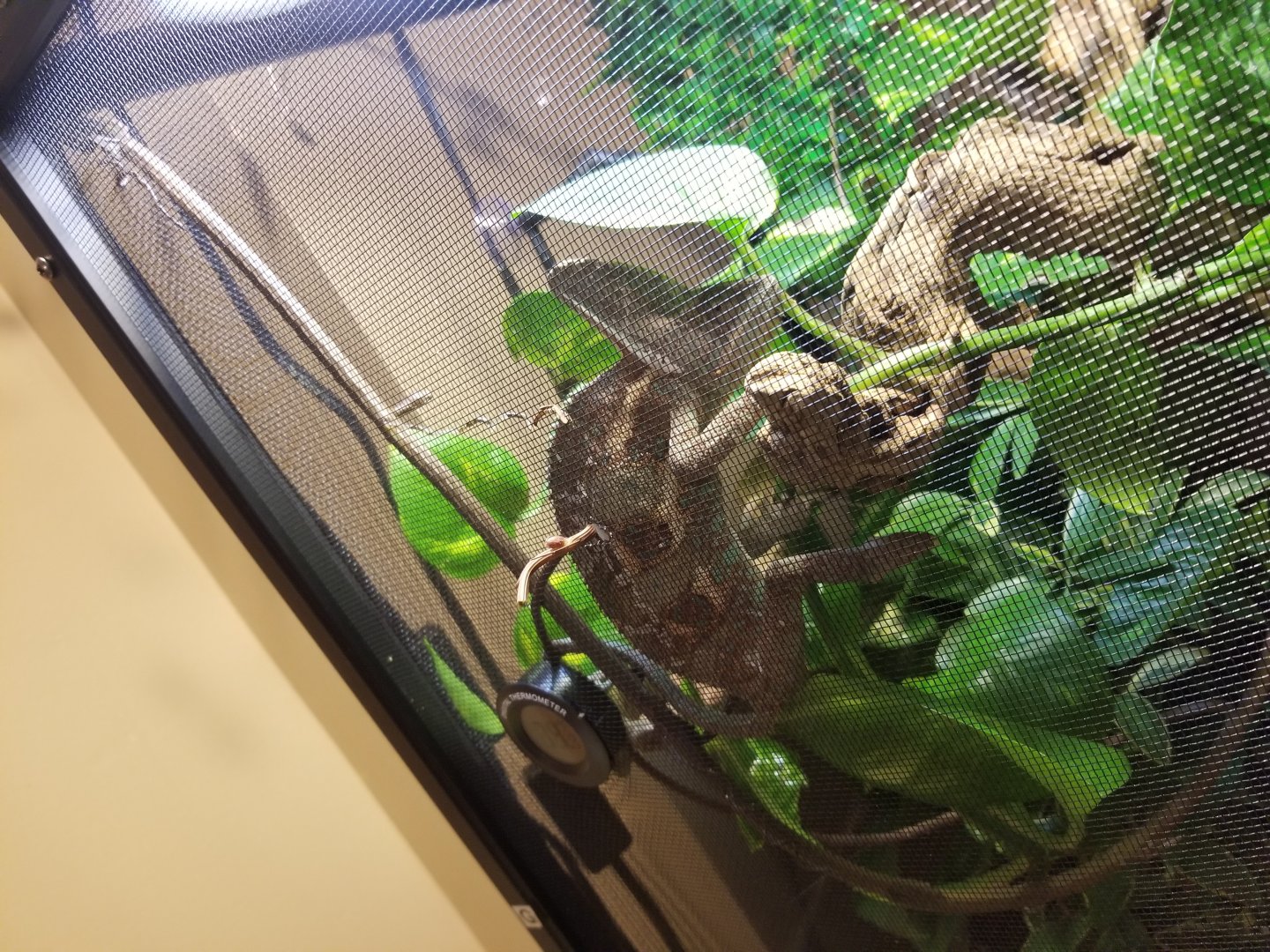 I thought it could be a temp issue but the gradient is fine for a sub adult male. It starts around 82°F at the very top and dropping to about 75 near the bottom of his enclosure.