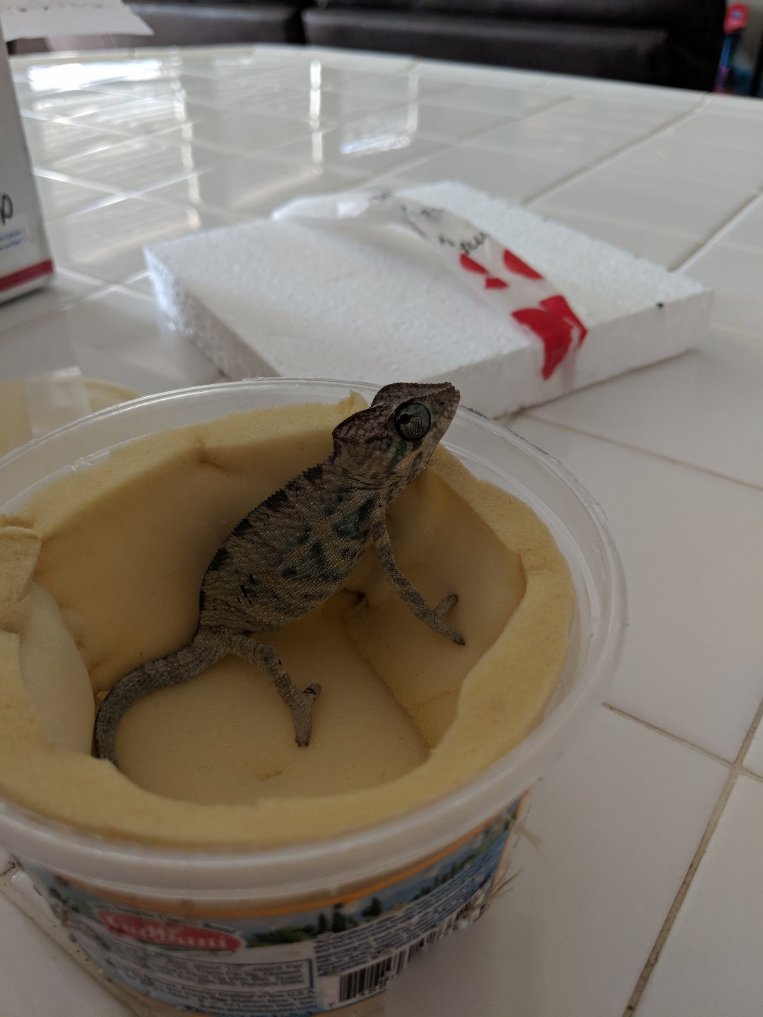 Thanks. Looks like I may have to change up my shipping practices. I use pillow stuffing on the bottom of the box, chameleon in a reptile bag and a very few newspapers on the top. I didn't use a deli cup by itself because I don't want the chameleons bouncing around in there. I like the foam. Great idea.