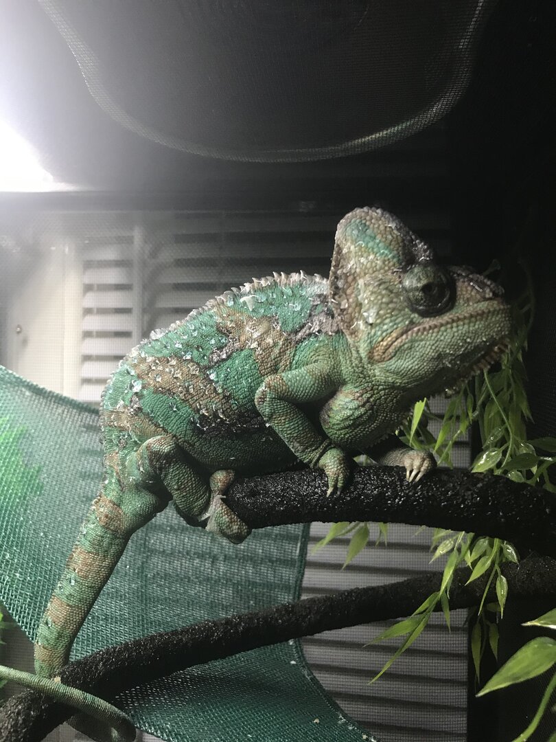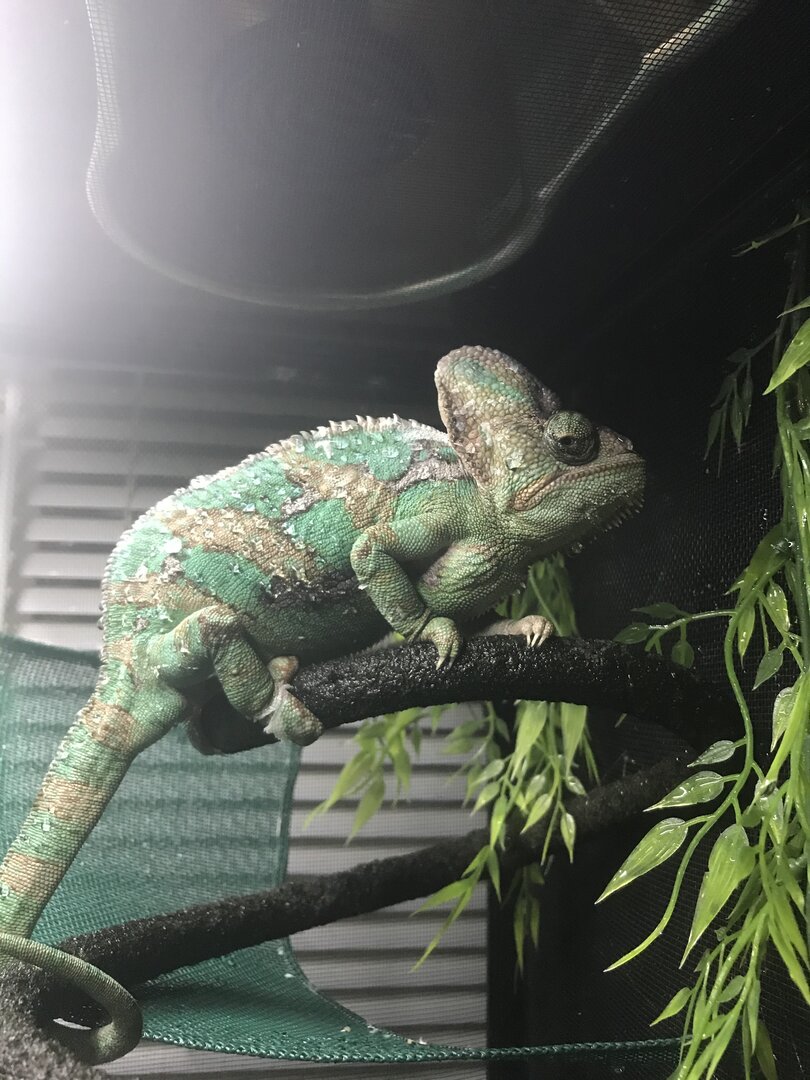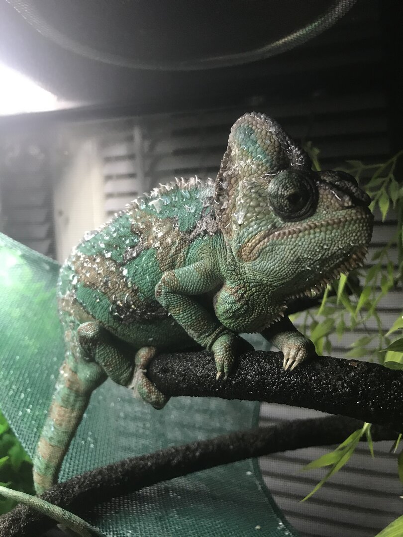 His names Neo and he’s very sweet. he’s never hissed or snapped at all and the only time he gets blue dotty or upset is when he gets too hot. He’s my first Cham so if you could give me any tips it would make us both very happy
