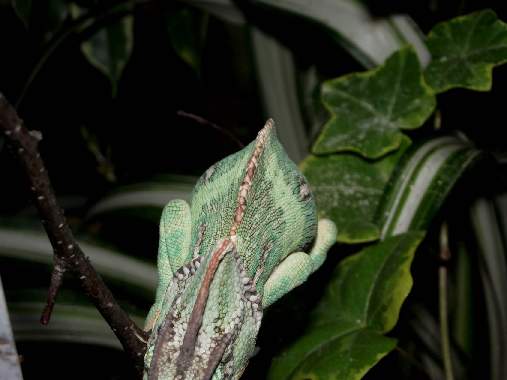 I have problem with my small veiled chameleon (male, old 4 month, i have it 2 monts). For few last weeks i noticed, that he have deformation on his head (see picturers - bent head, "crooked spine").