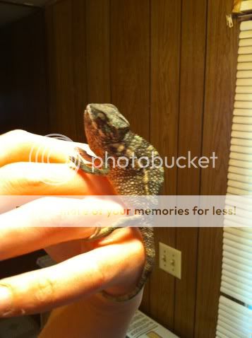 Well here is my 3 month old coming out for a visit. My roommate just got the IPhone 4 and decided to snap a pic. I guess chameleons and apple products just don't go together judging by his reaction. I wish the pictures did him justice he fired up wicked. I can't wait till he gets some of Fierce's red!