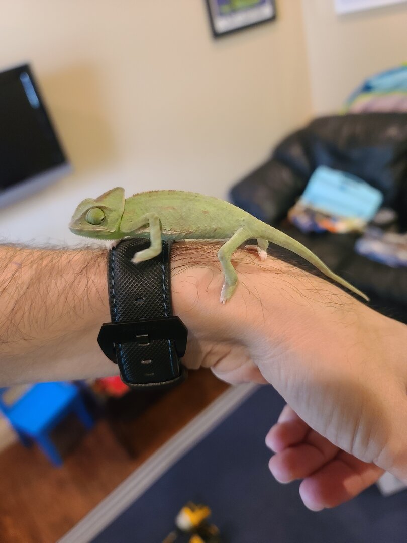 I am new to Chameleons but not new to reptiles as I grew up owning several large iguanas (over 15 years ago) so it has been a while. I am hoping someone can review my husbandry and let me know how I am doing and what needs to be changed. When we originally got Gus we were unsure if it was a Male or female and my kids named “him" but I am convinced Gus is a female. We are still calling her Gus…maybe Gusse