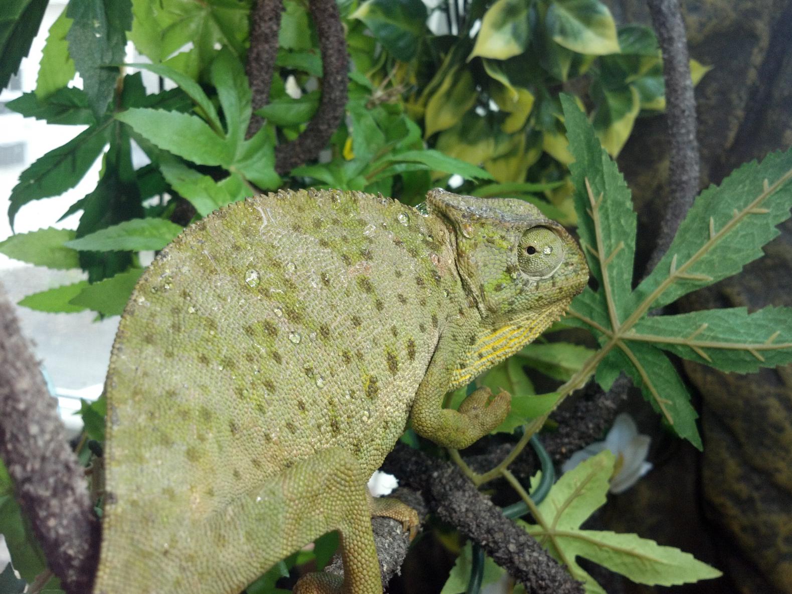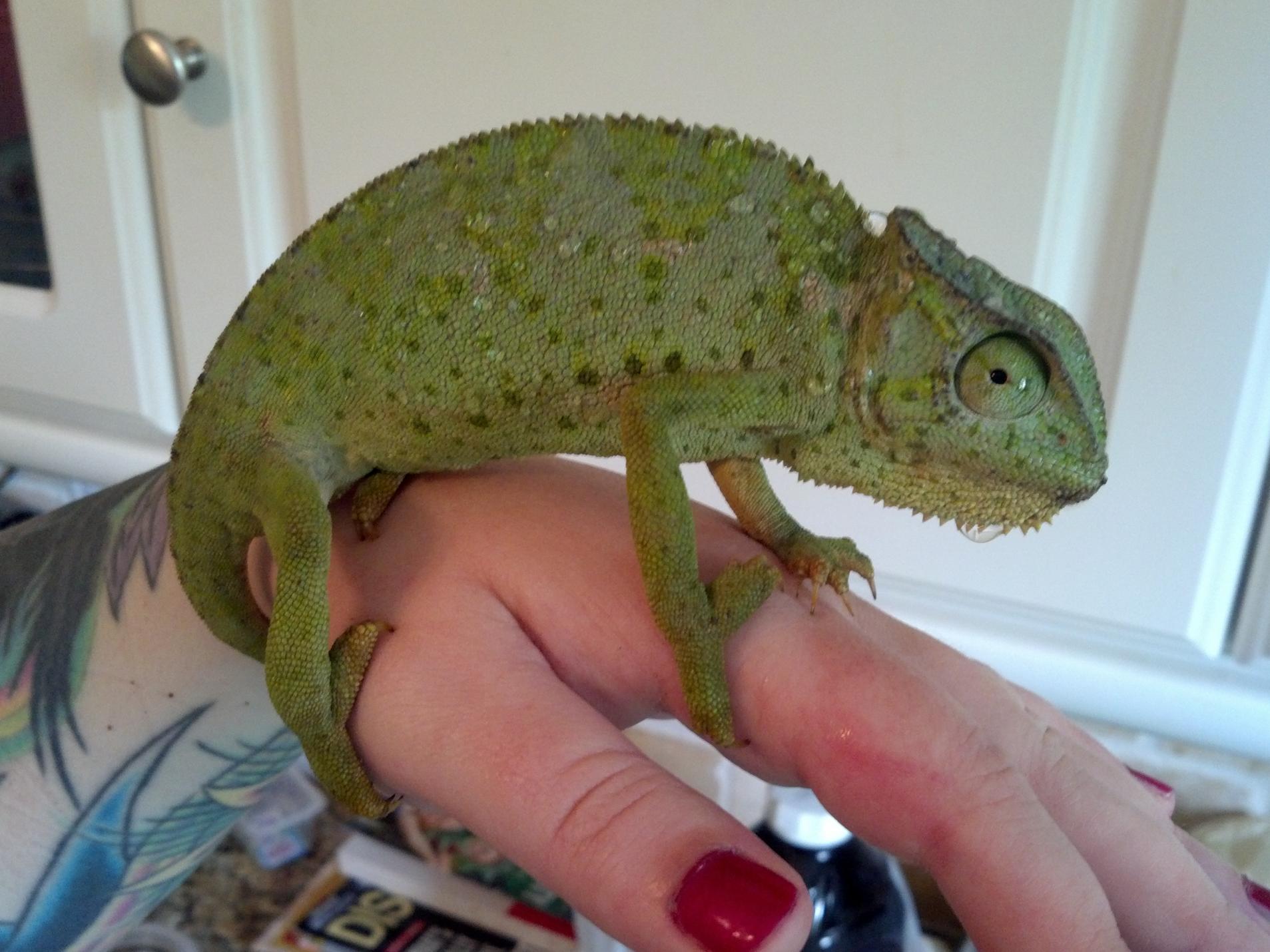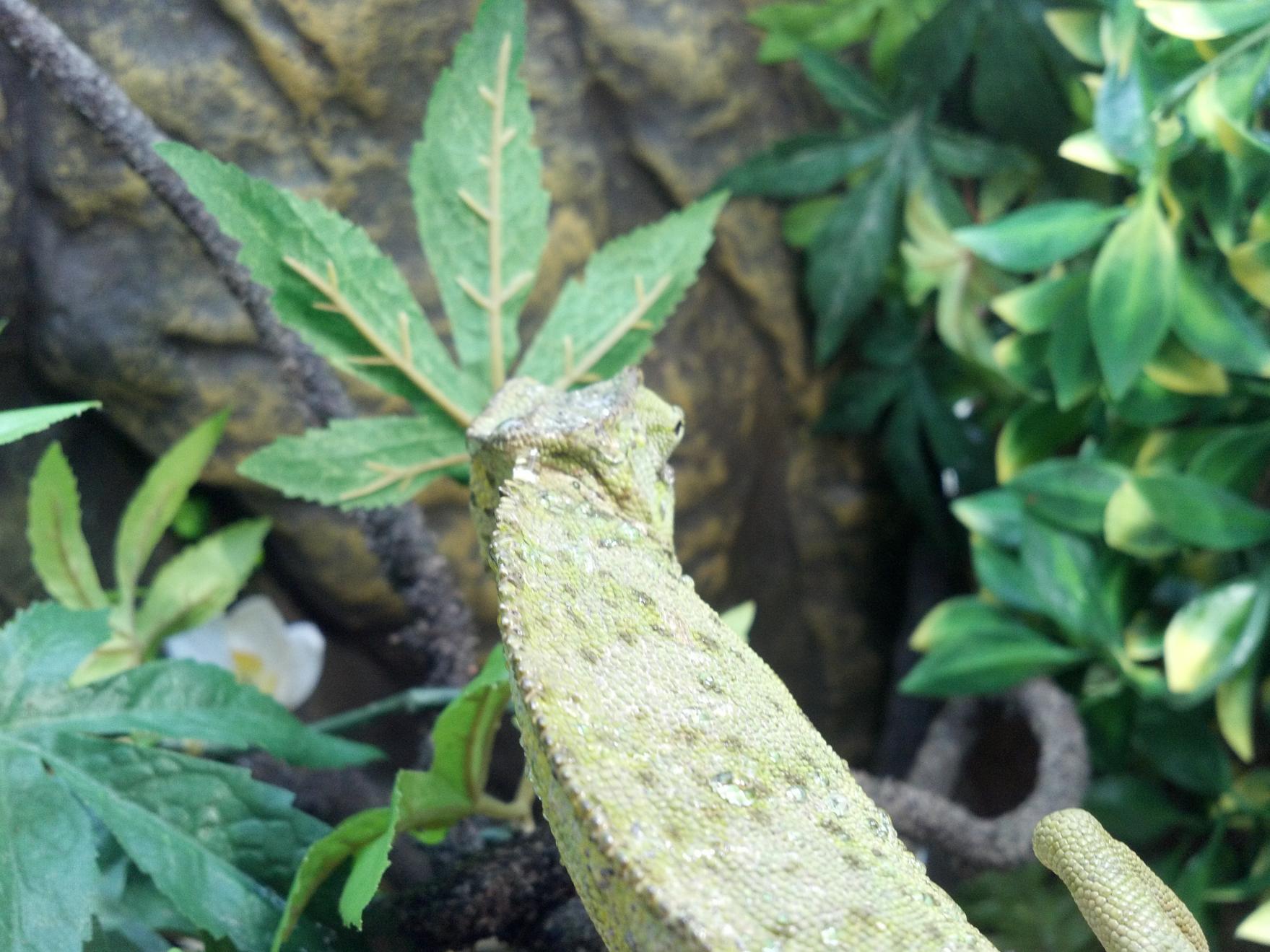 I'm still quite worried about her. She doesn't look worse (the other chameleons went downhill quite quickly) but she doesn't look better. I haven't seen her drink for a while, and she's spending more and more time at the bottom of the vivarium scratching at the sides. I'd put it down to eggs, but she only scratches at the sides, never the substrate. I've been putting a couple of crickets in per day, and they have been disappearing, but she's very shy about eating, and I'm not sure if she's picking them off when I'm not around or I'm going to pull out the viv and find a thriving colony of crickets behund the back board or something!