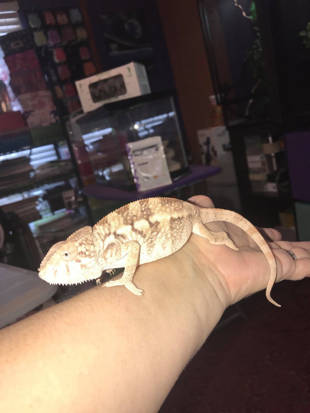 Good Morning! Nov of 2016 I purchased two Panther Chameleons from Petco. Both are happy and healthy and now a year and 2 months old and thriving. Originally I thought one was male and the other was female but I'm pretty sure both are female and need confirmation. I am positive Mindy is female. Mork is the one in question. Mork is larger than Mindy but has never displayed any other colors than Brown and Cream. He isn't as big as what I would think a male would be either. I never purchased them as a breeding pair so I'm not going to be disappointed if I have two females. I simply love Chameleons and need to know if Mork is really Morkie