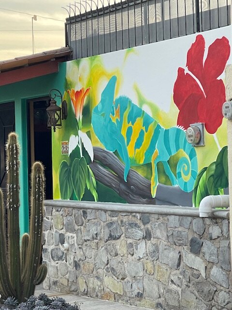 Too bad I don't live close so he can come do something in my reptile room.Thank you Vikki! We have tons of murals around the villages and a lot of good artist. The Mexican people are so talented. We chose Mario because he lives in our neighborhood and has done murals for several folks in our neighborhood. He’s super nice, too!