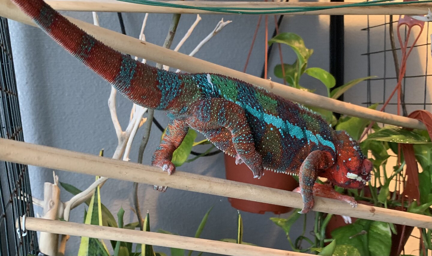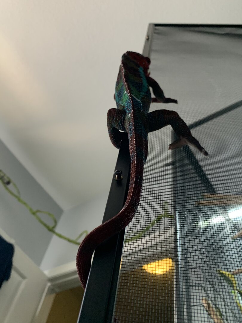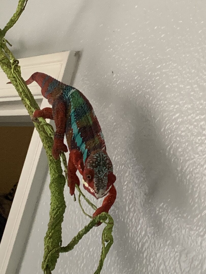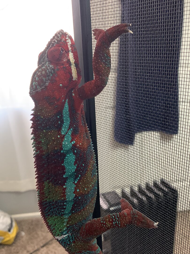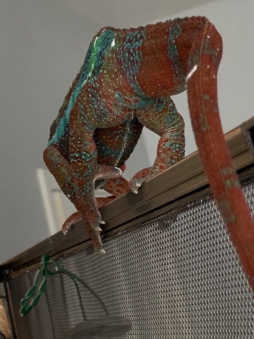 The rest are current photos of the thicc boi. I could be wrong, could be gout. His grip reminds me of jackson chameleon or veiled chameleon grip where he could break skin. My kids are afraid because they say it hurts because his grip has become noticably stronger and he has gotten a lot bigger. He is only a year n a half.