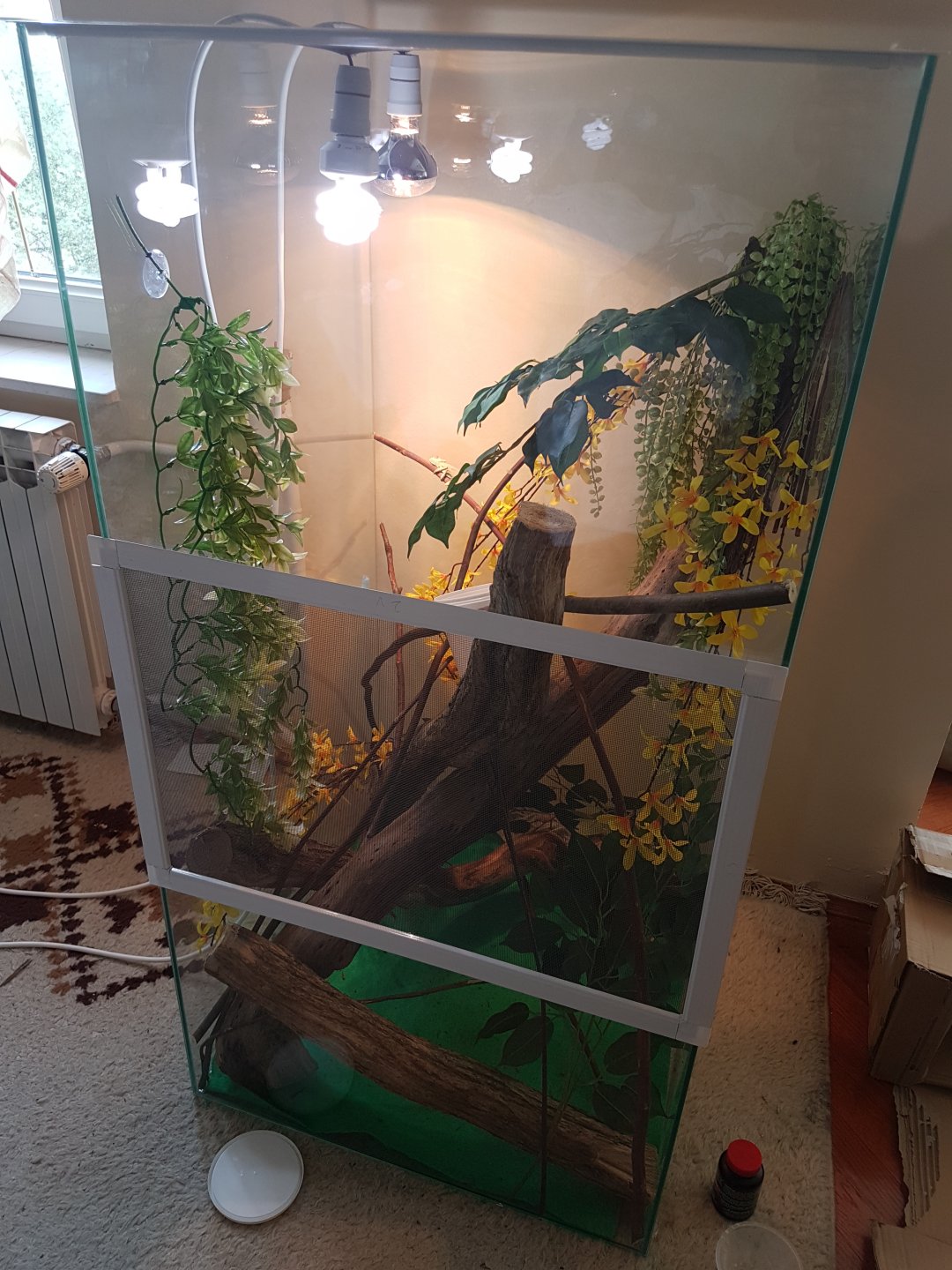 This is the cage...thick branches are vines and thin ones are fig tree...the rest are not live plants....today i sprayed the water 5 times a lot...i simply cant say much i have her one day