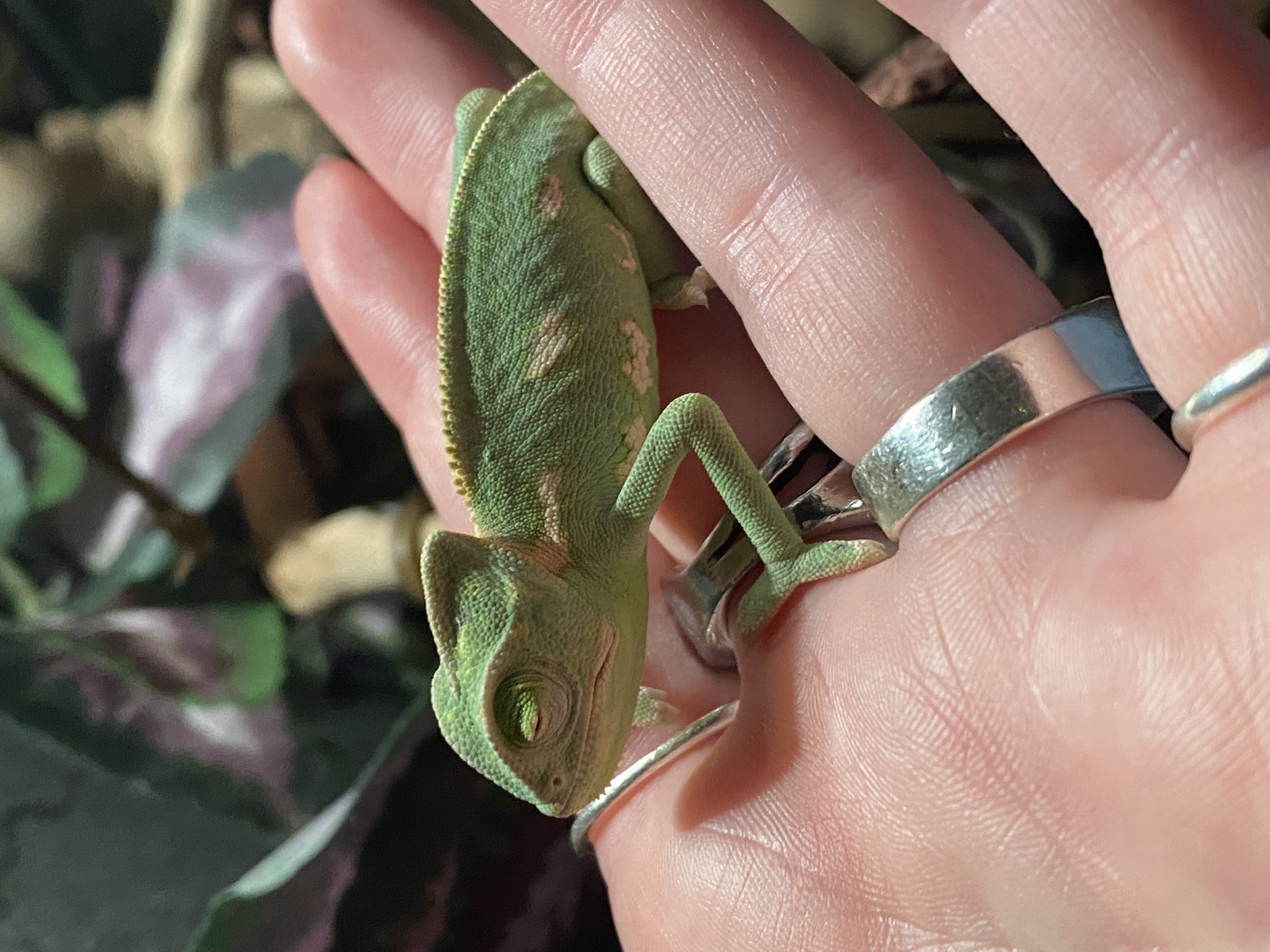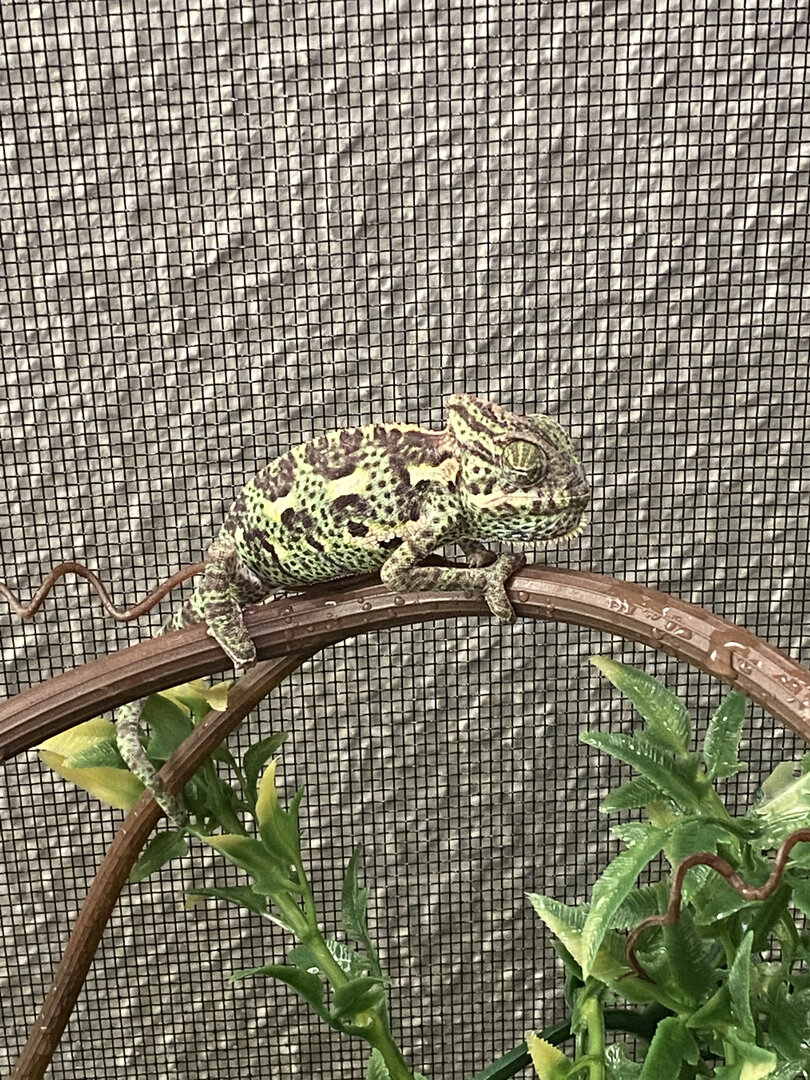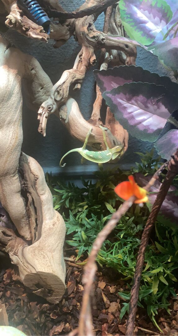 Hey guys, this is hard to write about as it is so recent. On Feb 28th, I bought a 2 month old male veiled Cham from Petco (I'll post another thread about why this was a bad decision). He looked fine and acted fine but refused to eat anything, barley drank, and continuously was aggressively rubbing his eyes on branches. Within two days, he declined to keeping his eyes shut all day and not moving (the few times he did, he climbed blindly). He got so bad that March 3rd I took him into the vet. The vet said she believes he has severe MBD and malnutrition (which is why I hate Petco for their neglect towards Chams). She said he was not well and gave him a Vitamin A shot as well as a list of vitamins to buy and feed him when he started eating. Until he started eating, I was told to force feed him the calcium and other medication she gave me twice a day. The first dose went well and he perked up after his vitamin a shot (even opening his eyes)! The next day, his conditioned worsened and he did not move all day or open his eyes. When the third feeding time came, it took me three hours to get him all of the food due to his small mouth and him not swallowing well. He spent the day every few minutes tilting his head up and gasping for air. I knew he was not well but I did not want to give up. In the evening, he was pale yellow and he was so weak he kept falling from his branches. He did this 4 times and I set him on lower branches to try and help any more possible incidents. He then almost fell but caught himself. Then his body aggressively wiggled and I saw him poop (or what I thought to be poop). He then lost grip so I picked him up and he was absolutely lifeless. I was about to put him back when his eyes opened wide and then his body began to tense up and shake. His limbs curled up as he seized in my hands and then his heart stopped. He turned black within an hour later. I am crushed. It was so painful to watch and I felt evil everytime I had to force-feed him. Also, my juvenile was extremely dark the entire day and as soon as he passed she actually brightened up. I wonder if she could sense his upcoming death. Now, My sixth month old female veiled turns a dark grey, green, brown when I try to feed her or even just look in her enclosure. She is hiding in spots of her enclosure that she never goes to. I never kept the two together. They both have separate enclosures that are not even right next to each other. When I tried to feed her, she hides, gets an unusual color and actually stares at my baby's now empty enclosure. I don't know what is going on with her. Please, please help. I will not know how to act if they both pass within a few days of each other.