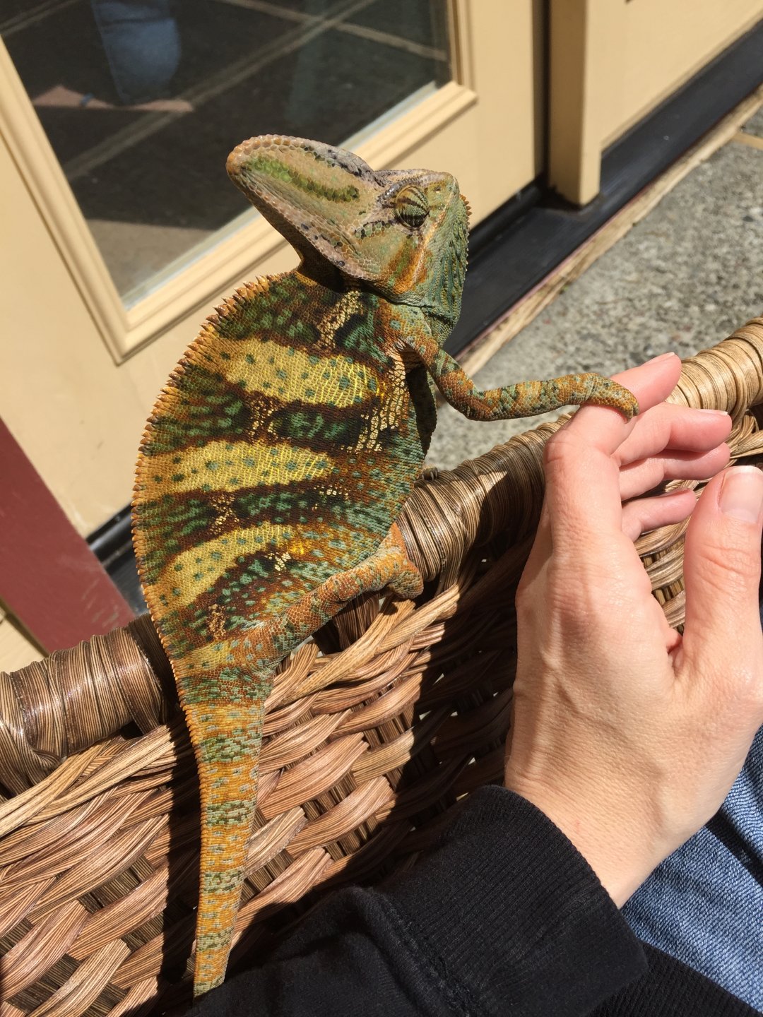My little man the past few days soaking up the sun. He cracks me up. So much personality in such a little creature. My favorite is the second one where he insisted on holding on to my finger while he basked. Sat there for 25 minutes like that. Today he decided that the palm of my hand was where he wanted to be.
