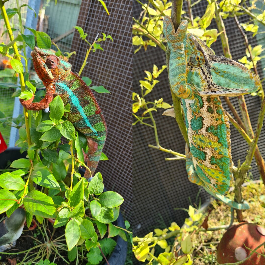 I know the veiled (boy George) is known buy our friends as Mr grumpyI love how your panther is out there for all the world to see and your veiled is trying to become one with the branch.![]()