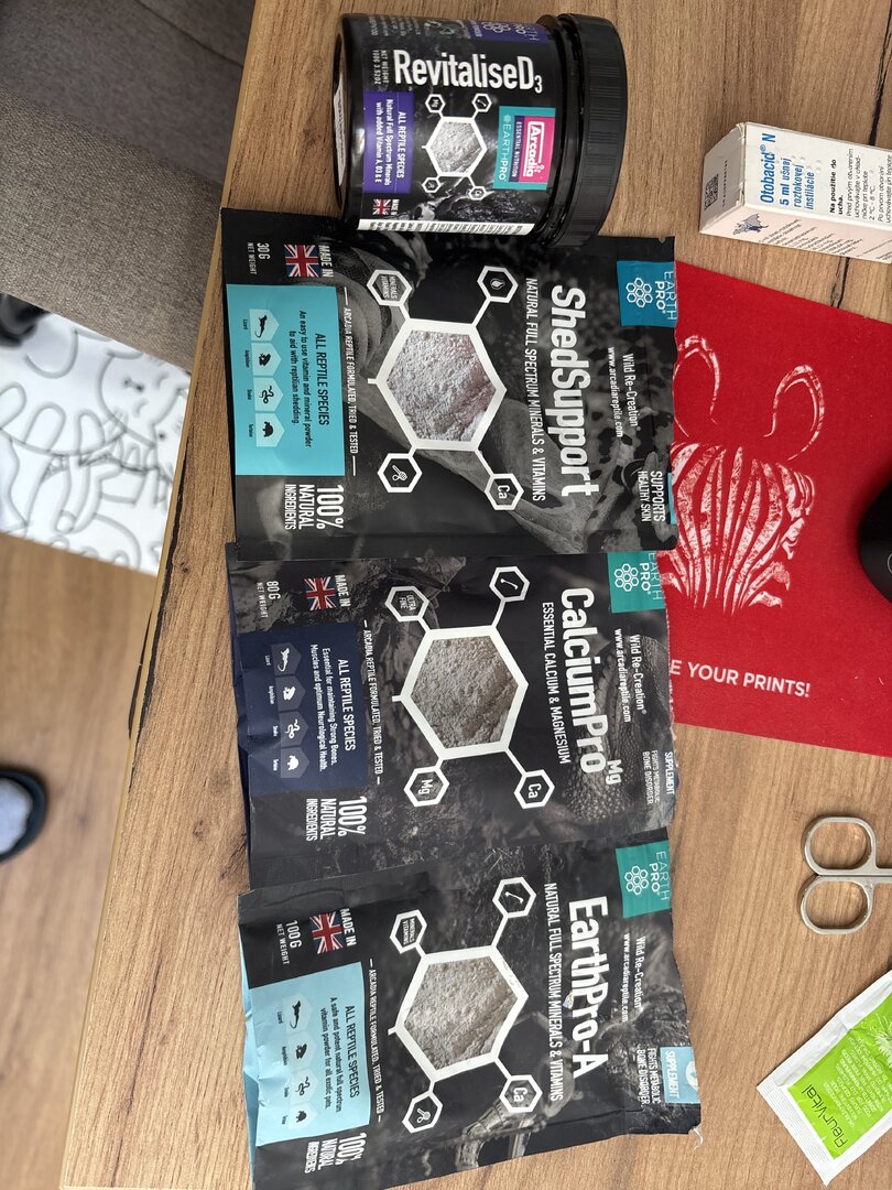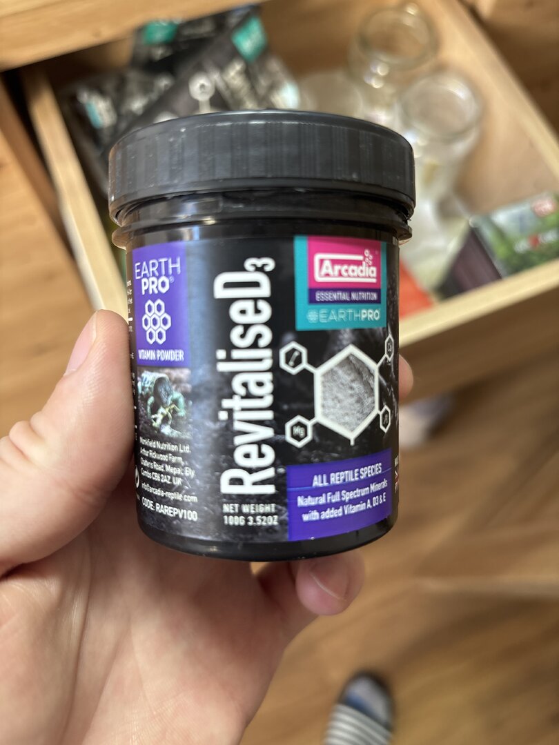 Arcadia revitalize is your multivitamin. It has very low levels of D3 and A so you have to ensure that UVB is spot on.