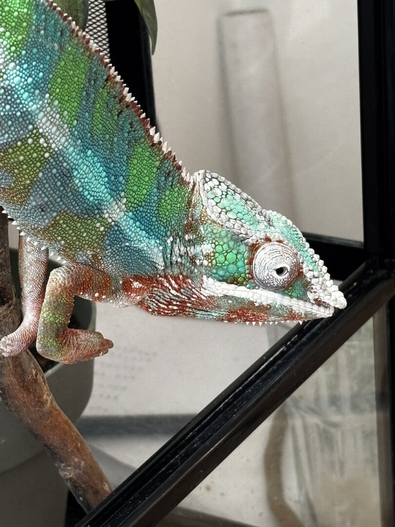Hello , thanks for your answer. Sure we have also revitalise D3 and we are using it as describe. I forgot add a photo.So I am speaking to misting the cage during the day not fogging at night. And what I mean by this is a good 2-4 minute misting morning right after lights kick on and in the evening a few hours before lights kick off. Not only does this give an opportunity to drink but an auto misting system like a mistking produces a very fine mist that sprays all over the cage and allows them the ability to go directly in the mist and they will clean their eye turrets. I am willing to bet he has something stuck in the eye but with you not misting the cage and giving him the moisture he needs to rotate the turrets and clear the debris it is just causing further irritation. So where you end up is a chameleon that has something causing irritation. They pull the turret in and constantly close the eye because it is uncomfortable. In the end if they are not able to clear it you can see issues of infection and damage to the eye depending on what it is.