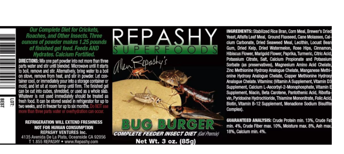 The only downside is Arcadia Dragon fuel is $20.00 a bag and Repashy Bug Burger is $12.00 for the two bottles you need for the 50/50 mix. So you’re in about $35.00 with tax. I would estimate that’s enough food to feed 1,000 crickets. Crickets are 13 cents each so that’s $130.00 worth of crickets. If you spend $35.00 you save pretty much all of them. And consider you would still spend money feeding them with other stuff, which costs money too, and they’re dying…