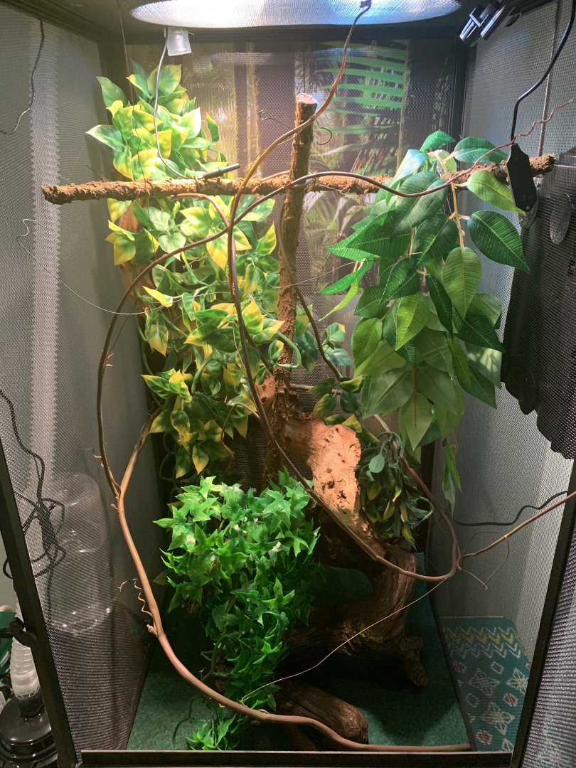 - Watering - I have the Repti rain mister which mists every hour for 30 second (I was thinking of changing that to 15 seconds). No I have not seen him drink.