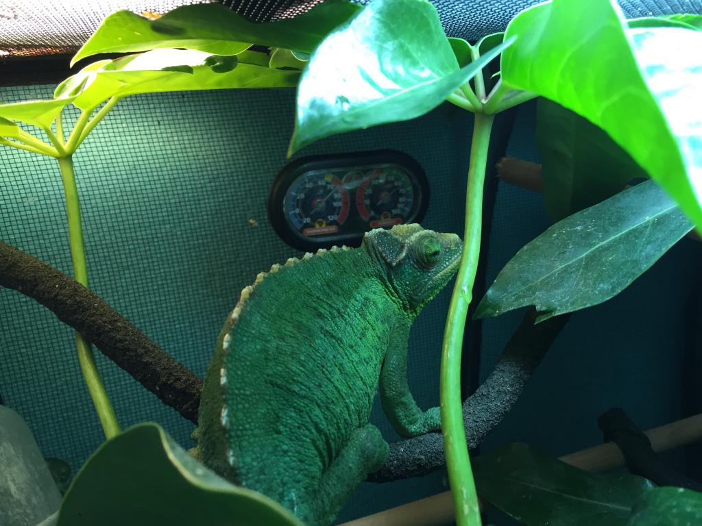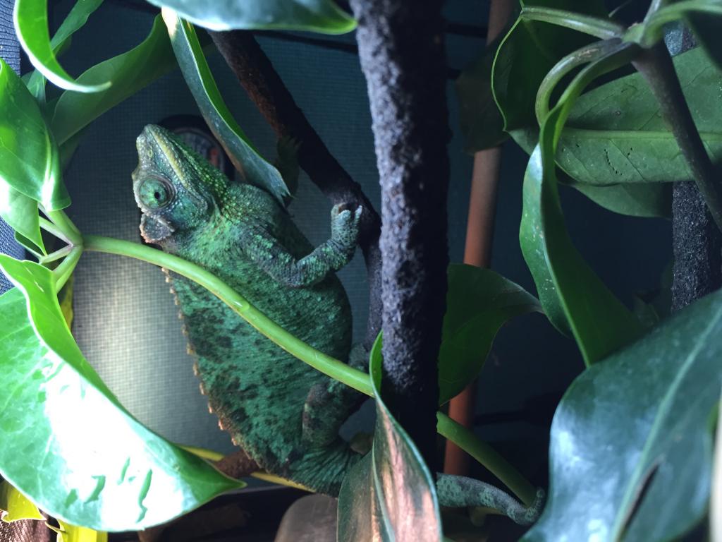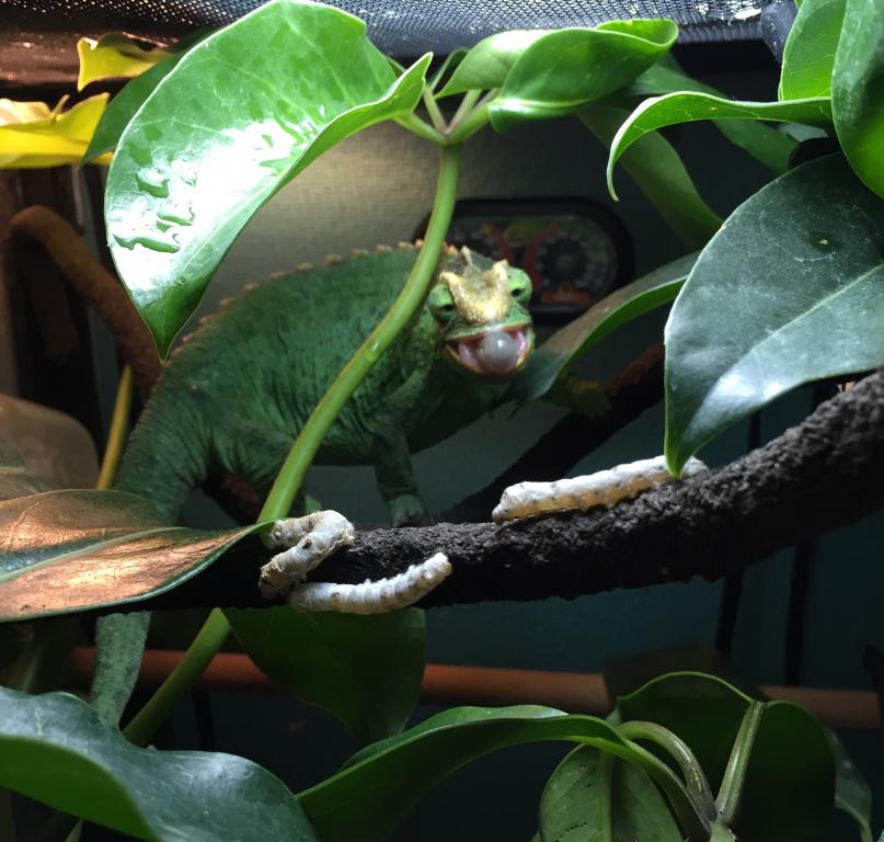 On Wednesday, my Jackson's Xantholophus will be 8 months pregnant. Should I be worried that she hasn't given birth yet? She is somewhat active and is still eating. I've had the "nursery" set up for two months thinking that she would have had them by now. She appears healthy and not overly stressed. She's bright green much of the time but gets dark patches when I stick my camera in her face/space. I will try to attach a couple of pictures taken in the last hour or two.