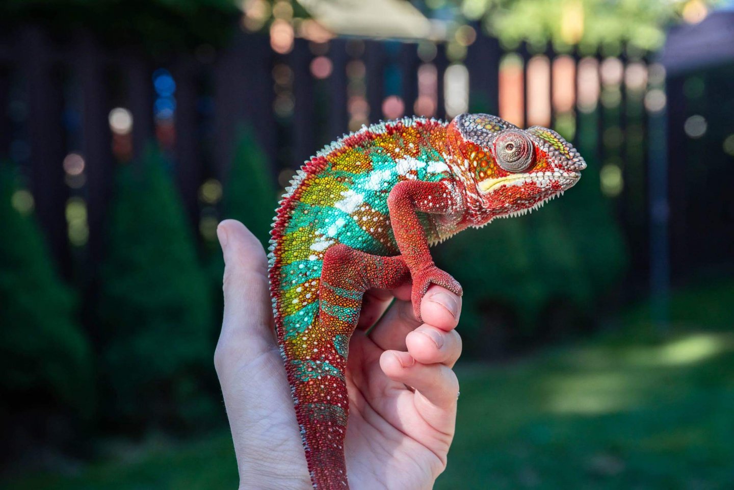 My 10 month old blue bar ambilobe panther chameleon. He is so sweet.. always wants out to roam around.